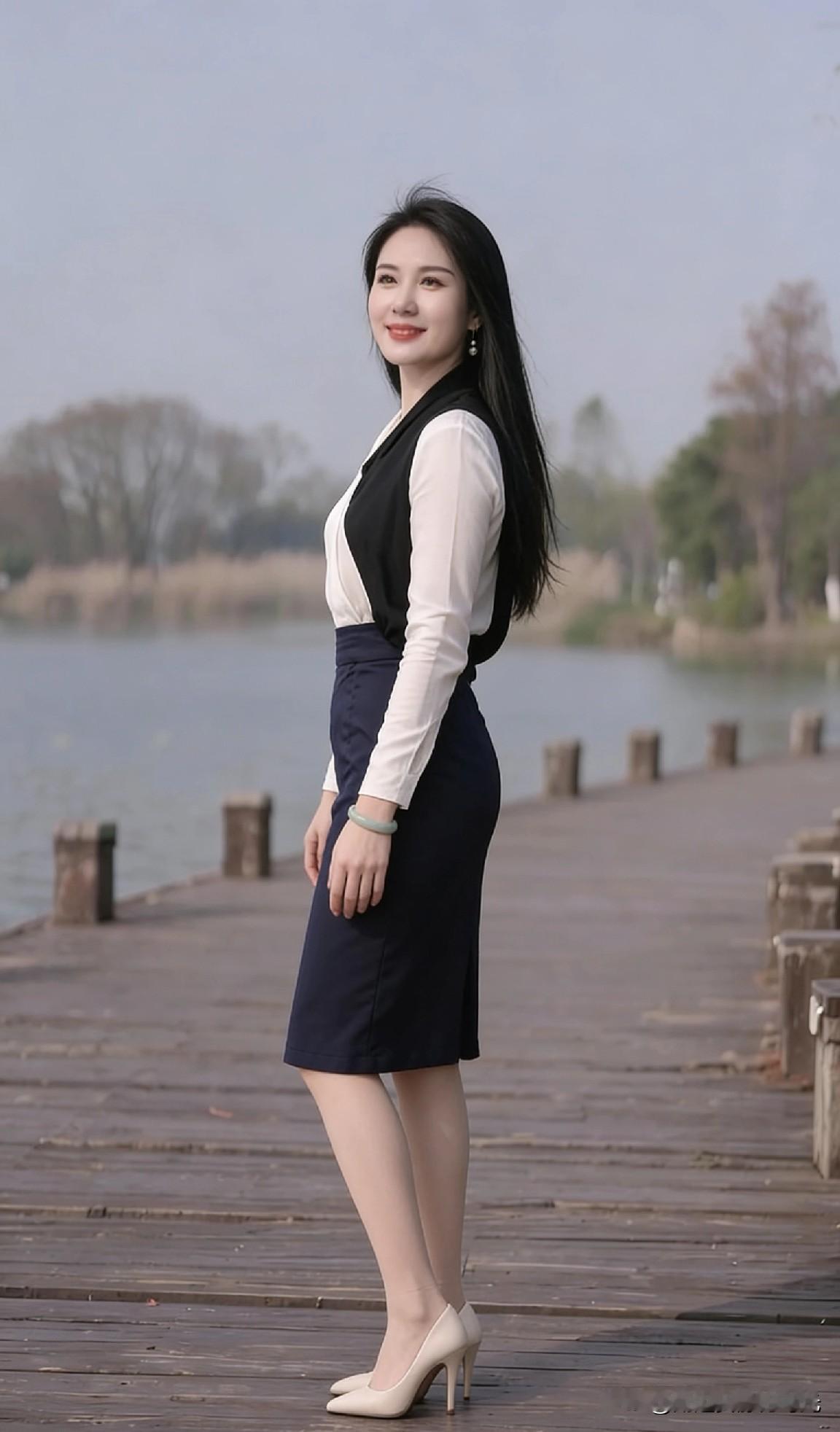 优雅气质,湖畔漫步,黑白配色的时尚穿搭
