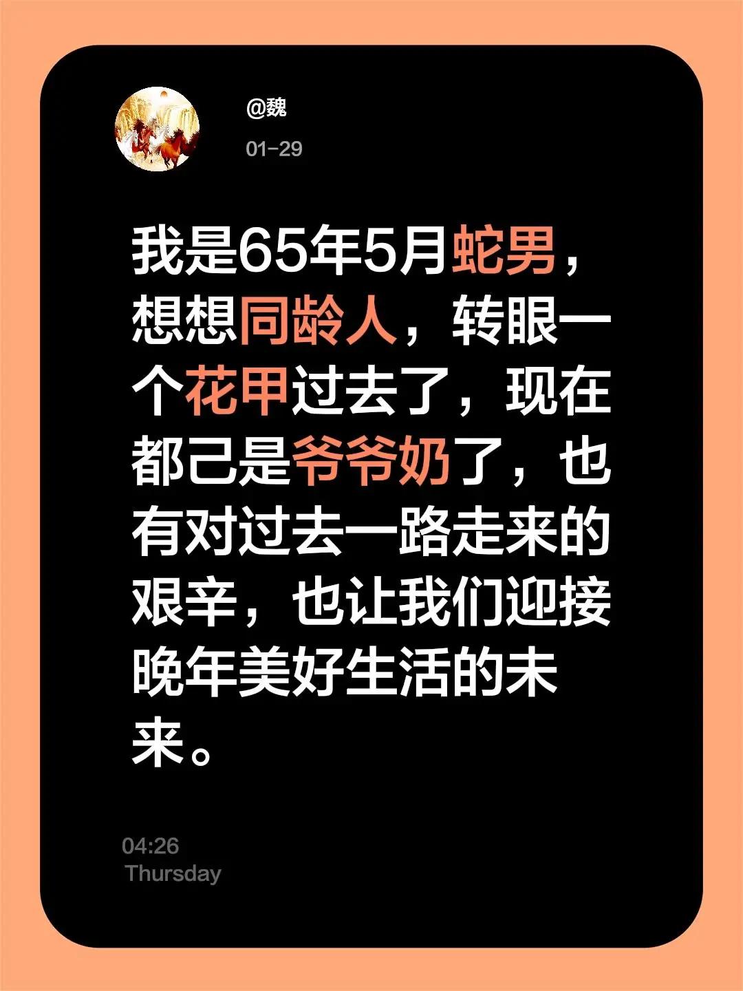 我评论了@龙诚姥姥的作品:我是65年5月蛇男,想想同龄人,转眼一个花甲过去了,
