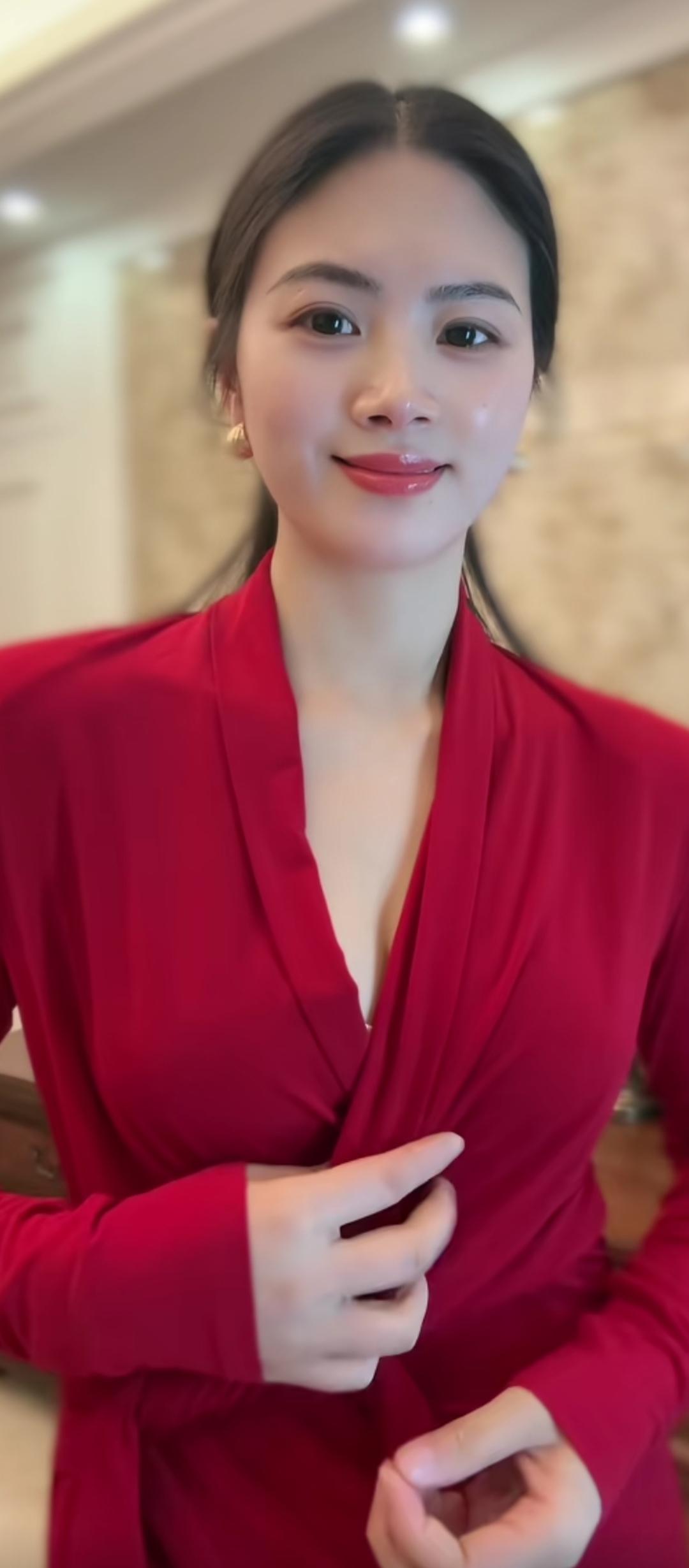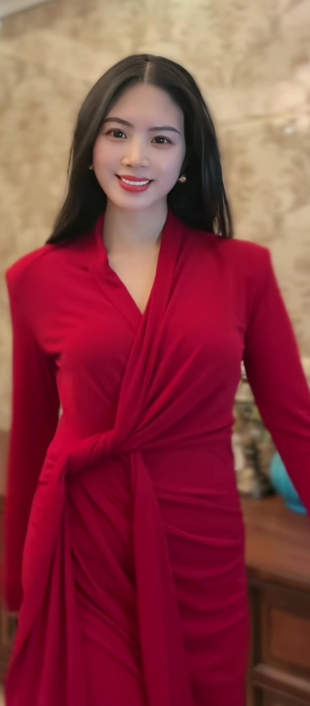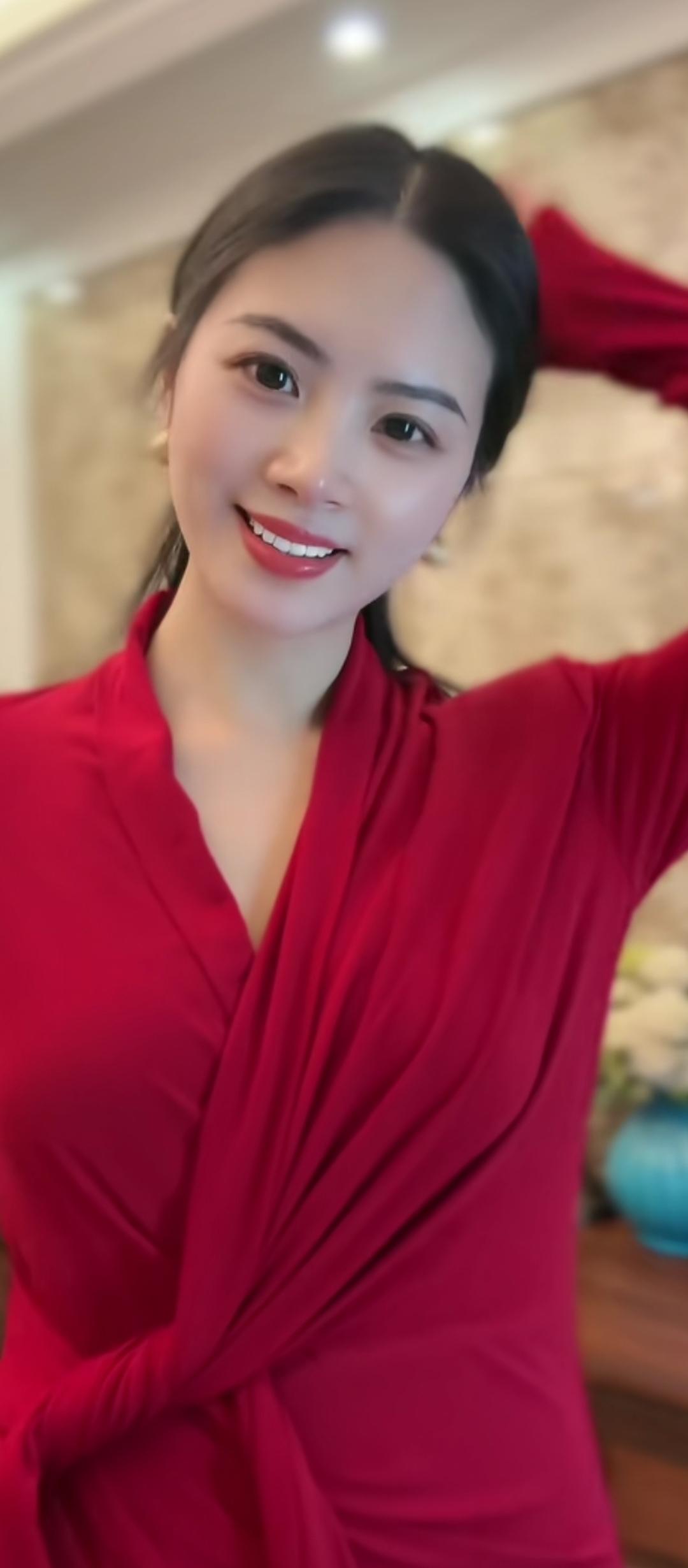 红衣美人,笑靥如花。