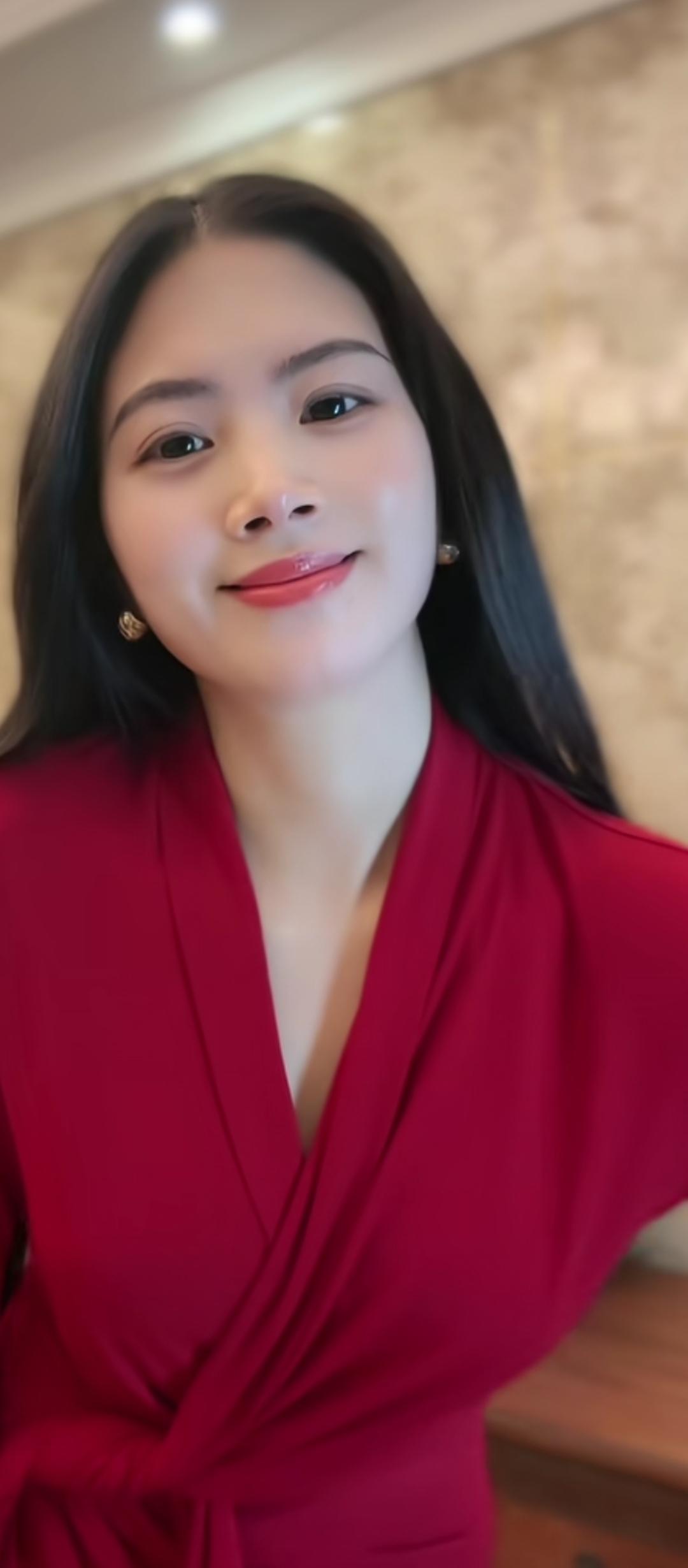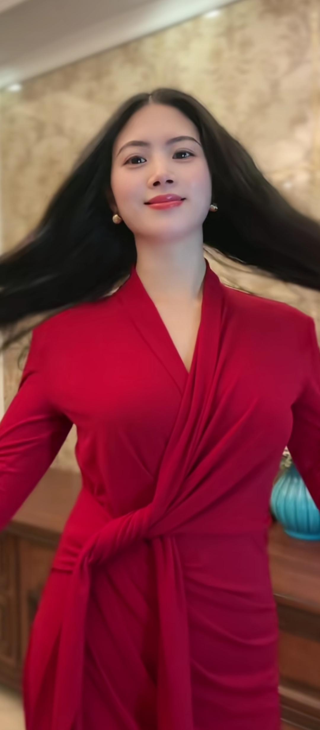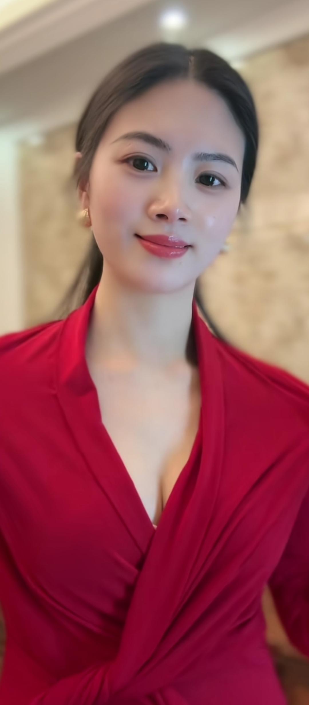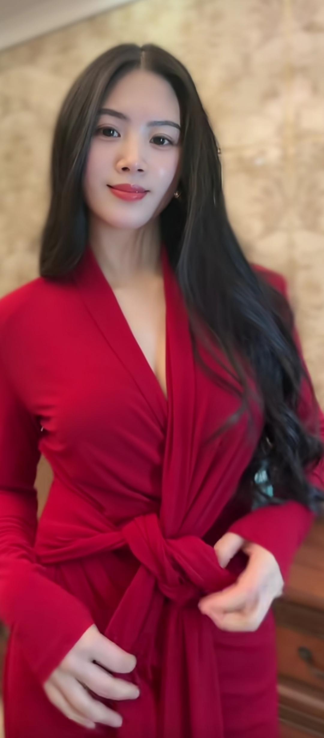 红衣美人,笑靥如花。