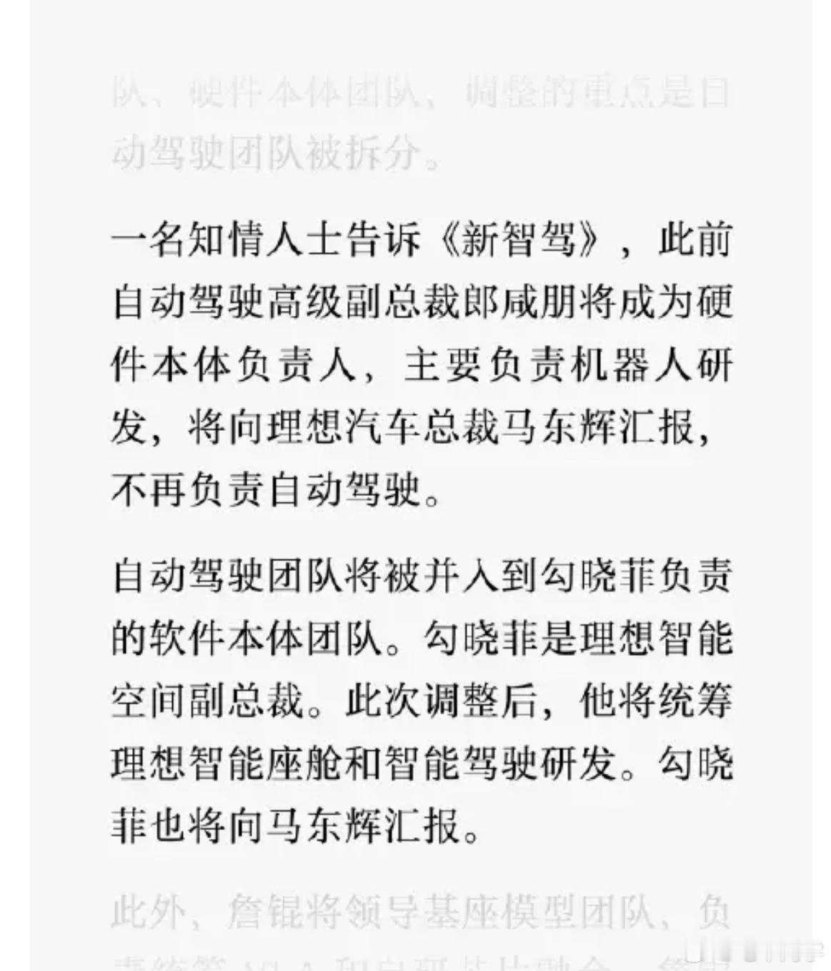 2024年年中,理想的第一次智驾翻身仗开始对外传播,郎咸朋+贾鹏的组合在两天内接受了几十家媒体的一对一专访,同一个故事在两天内讲了几十遍,端到端+VLM的软件开始上车。一年多后,这两人后者离职做机器人了,前者公司内换岗做机器人了。车机的负责人统筹智驾了,结合前几天李想再次ALL IN AI的内部信来看,理想这家公司确实是组织架构践行公司决策,上下齐心奔赴AI和机器人了。2026的理想汽车,L6面临问界M6的压力,L789面临小米小鹏华为系的压力,i68反复被产能折磨,而且i6的造型在订单蓄水池耗尽后,持续的订单能力,都是问号?仰望星空很好,眼前的卖车如何解决?我们相信理想的决断力和执行力,但李想需要给大家答案,要不然,舆论和终端,大家都是问号和或多或少的恐慌……