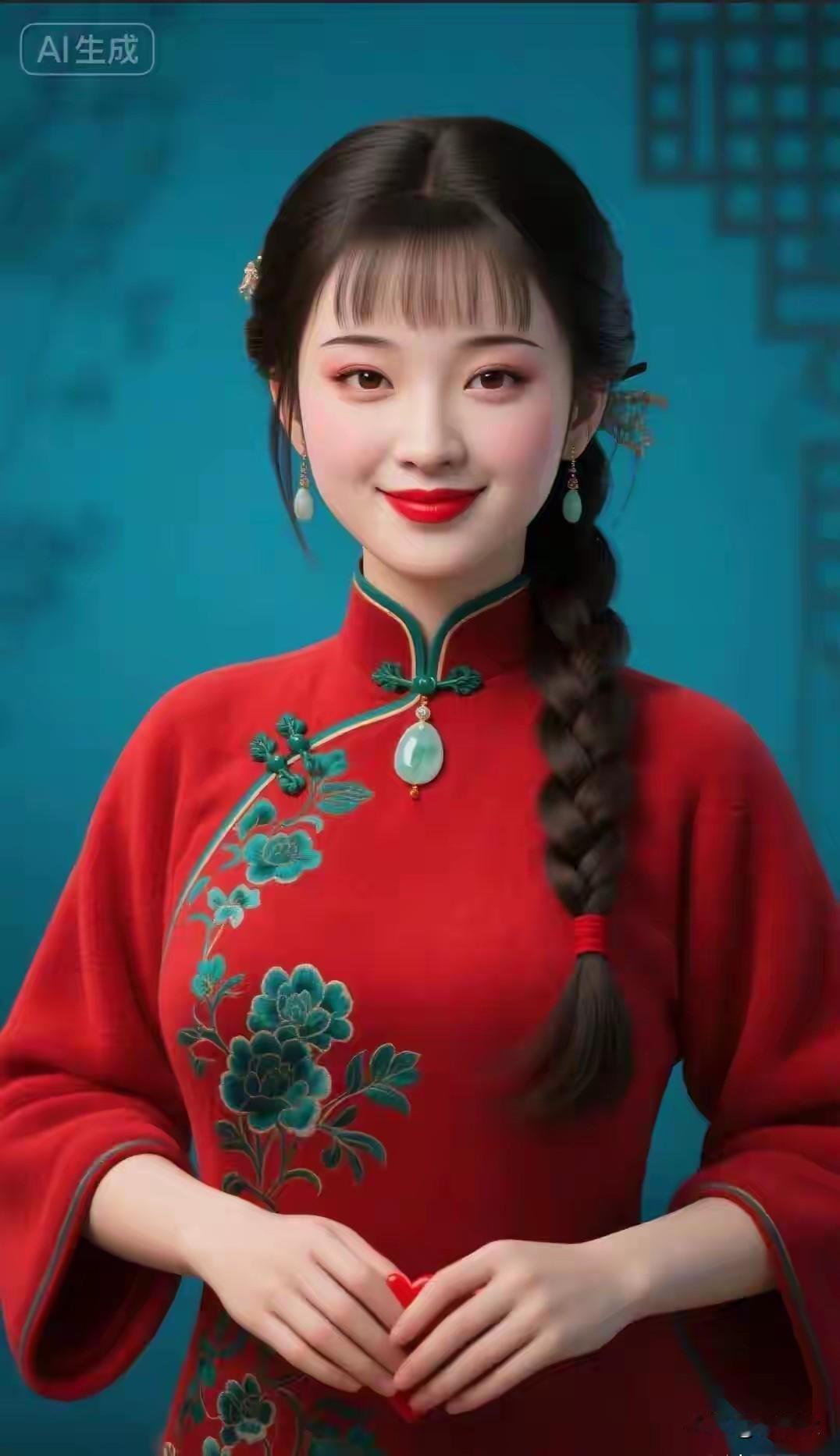 雨打石板响叮咚, 繁花垂落映墙红, 漫步古街心自静, 旗袍折伞显娇容。