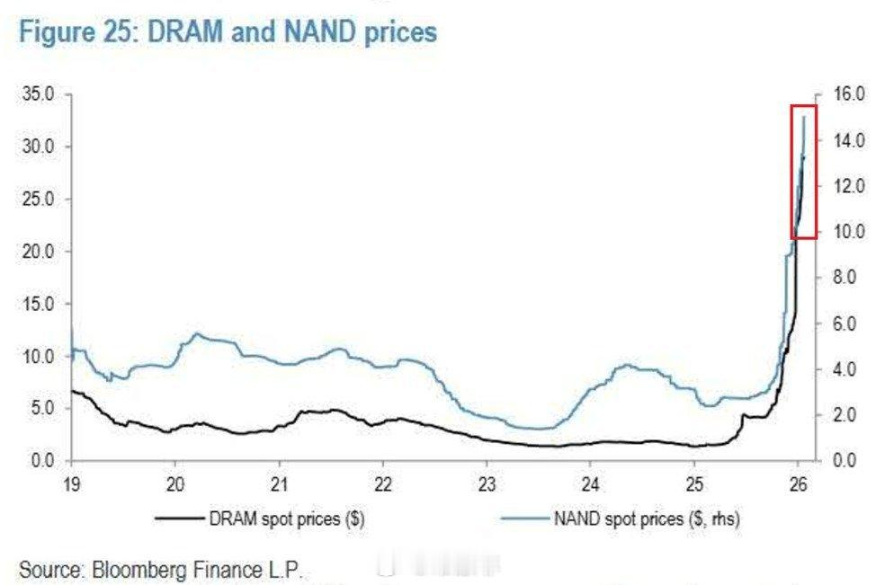 【全球存储芯片价格飞涨】动态随机存取存储器(DRAM)现货价格已升至创纪录的平均 30.0 美元。 事实上,16GB DDR4 的平均现货价格目前同比上涨 2352%,达到76.9美元。与此同时,8GB DDR4 内存价格同比飙升 1873%,达到 28.9 美元。 8GB LPDDR4 价格同比上涨 752%,而 16GB DDR5 价格同比上涨 647%。 即使是通过长期协议确定的合同价格,同比也上涨了 60%,预计到 2026 年平均还将再上涨 100%。 全球内存芯片短缺导致价格呈指数级上涨。老常政经芯片存储芯片常涤非观点网易新闻