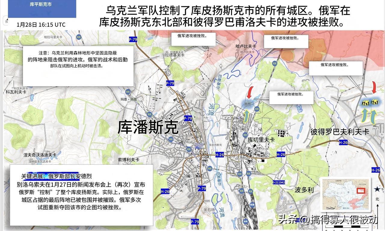 当克宫再次信誓旦旦称占领库皮扬斯克时,真实的情况却是这样:被围在市内的俄军再也等不到援军的到来,要不被“去军事化”,要不“释放善意”,似乎已经没有任何抵抗的存在了,基本可以确定,乌军完全控制了库皮扬斯克。