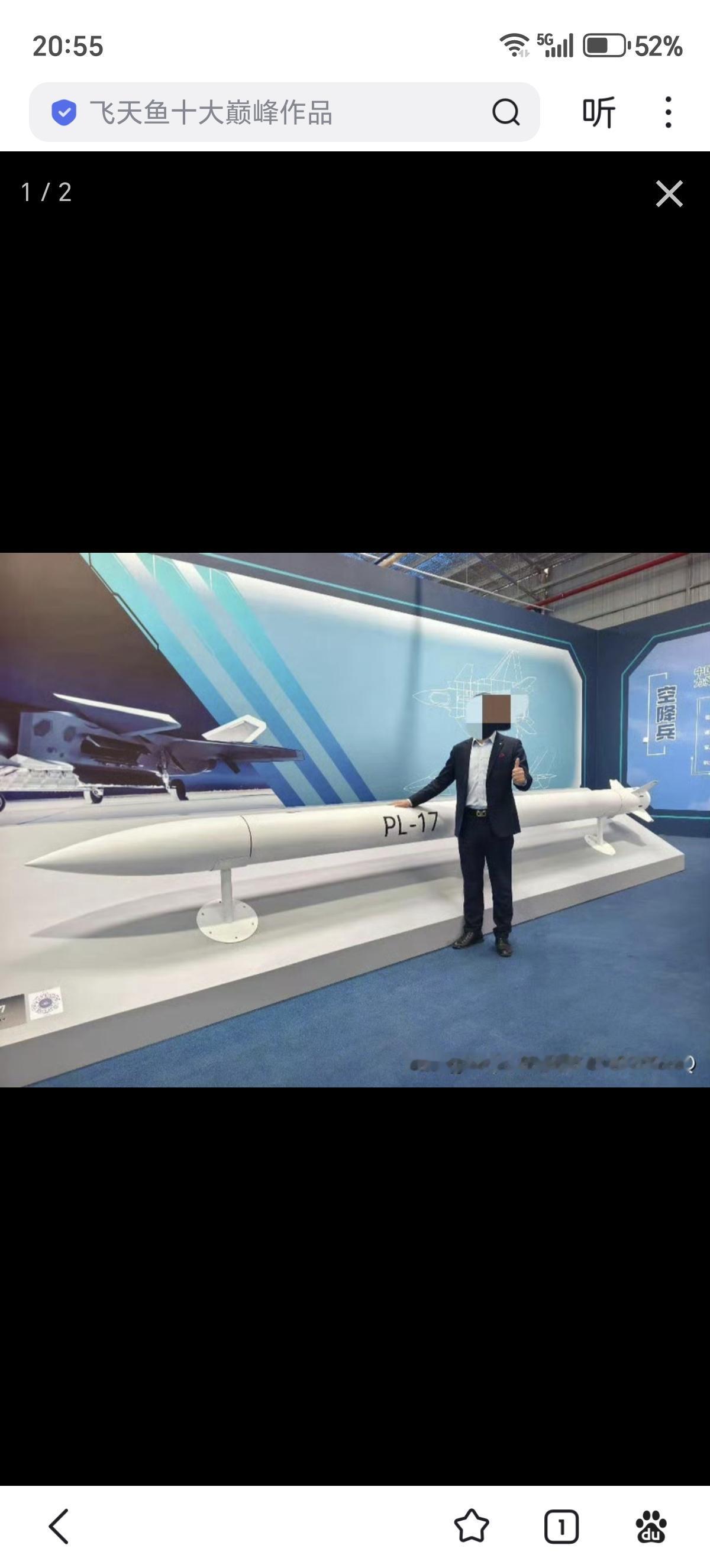 霹雳-17全尺寸模型首次曝光 网友发布的与霹雳-17超远程空空导弹的合影照片,通过与人物的对比可以看出,霹雳-17空空导弹非常的长!射程据说超过500公里!