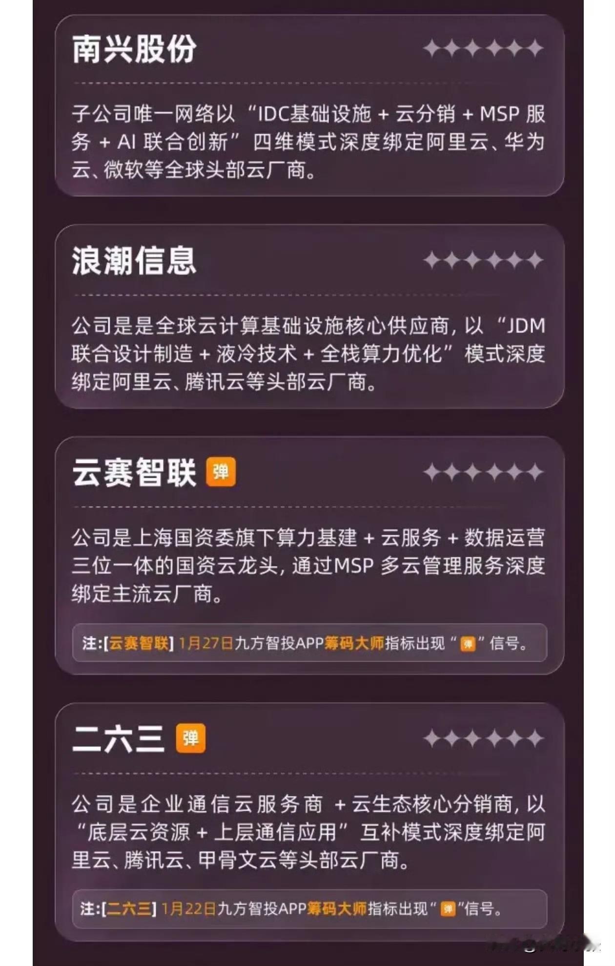 谷歌云官宣涨价,云计算行业迎来连锁反应! 从谷歌云到亚马逊云,海外云厂商纷纷提价,国内产业链或同步受益。 整理了云计算产业链核心概念股,涵盖基础设施、算力服务、电源配套等关键环节。 美利云:绑定腾讯、美团等头部云商,基础设施服务核心玩家。 网宿科技:边缘侧核心服务商,低时延分发+算力支撑双轮驱动。 欧陆通:云厂商核心电源伙伴,高功率液冷方案助力算力升级。 首都在线:全球云网一体化服务商,算力网络+智算平台双布局。 远东股份:深度参与头部云商数据中心建设,基础设施配套龙头。 宏景科技:拿下阿里云60%+海外算力订单,全链路智算服务提供商。 南兴股份:四维模式绑定阿里云、华为云,IDC+云分销双轮驱动。 浪潮信息:全球云计算基础设施核心供应商,液冷+全栈算力优化领先。 云赛智联:上海国资云龙头,算力基建+云服务+数据运营三位一体。 二六三:企业通信云服务商+云生态核心分销商,底层资源+上层应用互补。 云计算涨价潮来袭,产业链景气度持续攀升,这些核心标的值得重点关注! 个人观点仅供参考!