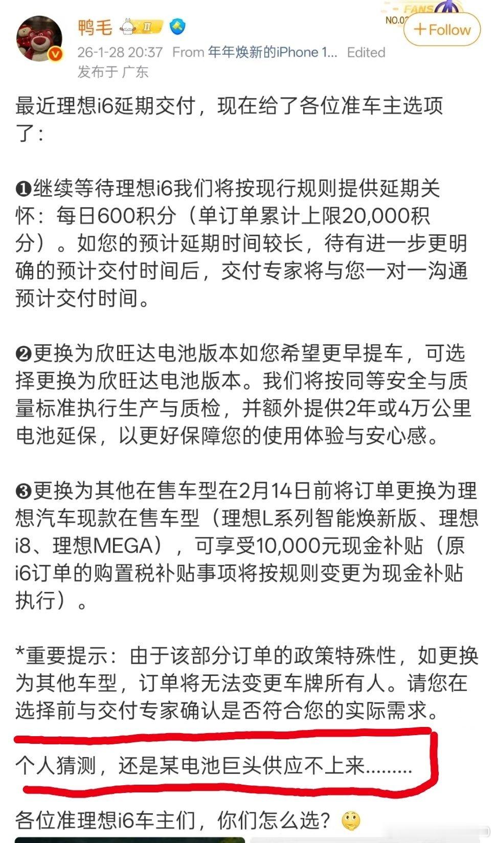 没错,的确是某巨头供应不上来但不是排名第一的为了平衡两家的供货,刻意限制“第一”装车量,“第一”安排的产能都没满产呢,否则全量供应也不是问题我也是供货不足的那家的用户,电池也挺好,我们要讲事实,不能用假消息抹黑企业