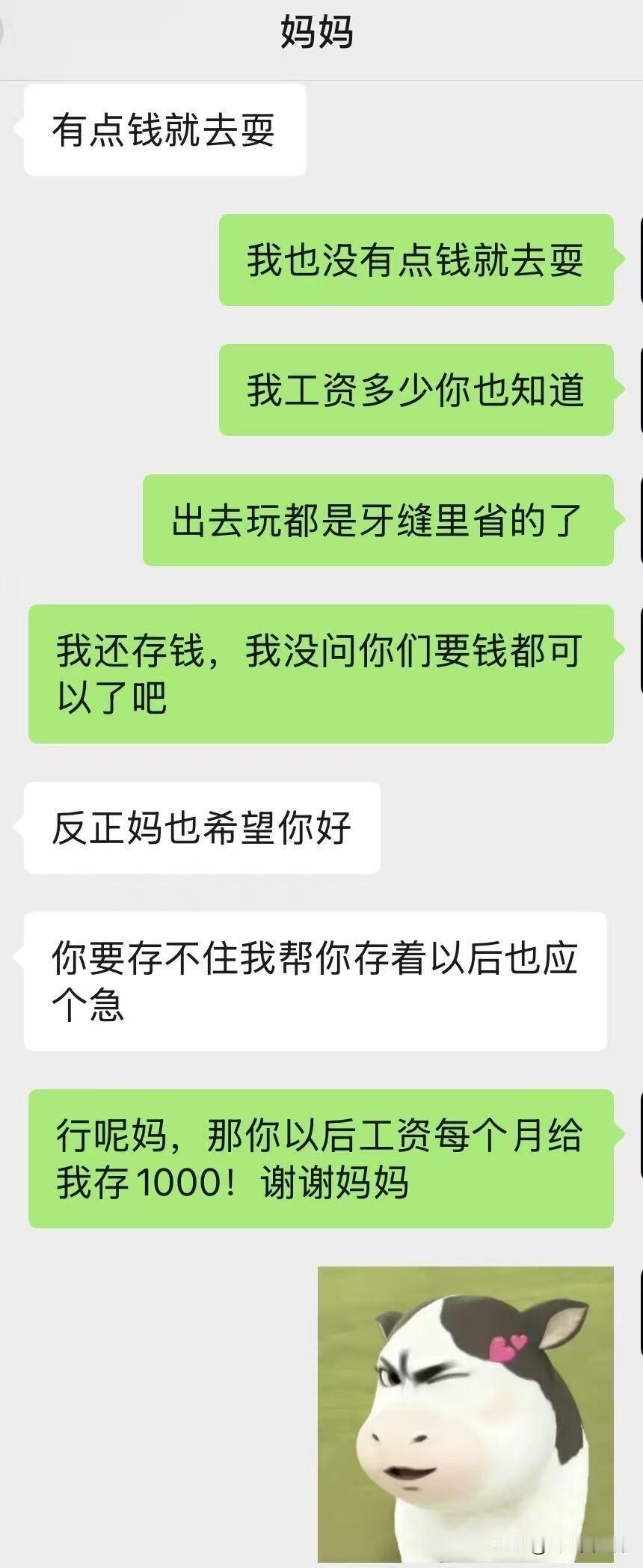 我妈看我去旅游提出来要帮我存钱 我妈看我朋友圈说又准备去旅游了,然后提出来要帮我存钱,我跟她说放松一下,又不是天天旅游,我天天加班,每天工作10几小时,每天通勤就仨小时了,还不嫌我累吗?我自己平时除去水电房租不剩啥钱了,每个月都有记账,结余啥的,看25年账单餐饮占大头,娱乐其实都没多少,反正就是看我妈讲话心里很不舒服,话里话外为了我好实际真给她了能不能拿回来都是一回事儿,真是没招了。上学时候拴住我管着我,靠自己本事找工作上班赚钱了,30多岁存点钱了,花自己钱出去看看世界了,又想拴着我。