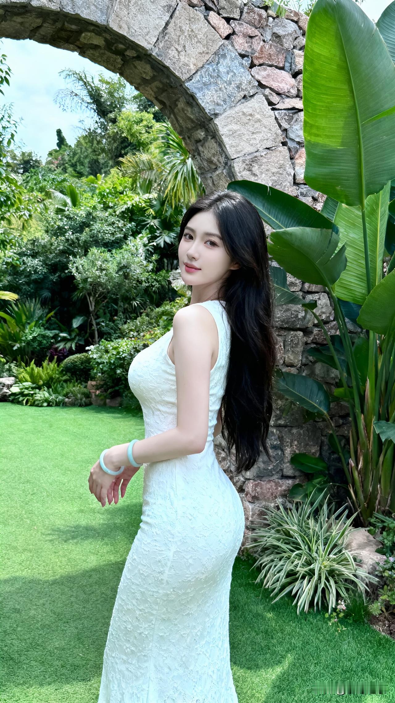 我站在石拱门下,白色蕾丝裙的裙摆扫过嫩绿色的草坪。热带植物的叶子在风里晃着,阳光穿过拱门在地上落下斑驳的光影,我抬手理了理头发,想起上周和陈默视频时,他说等忙完项目就来陪我。 正对着镜头调整姿势,身后传来行李箱滚轮的声响。我回头,陈默穿着我送他的白衬衫,手里捧着一束鸡蛋花,花瓣上还带着水珠。 “不是说下周才来吗?”我踮脚勾住他的脖子,鼻尖蹭到他领口的皂角香。 “想给你个惊喜。”他把花塞进我怀里,手指划过我腕间的玉镯,“看你朋友圈发的照片,特意穿了白裙子等我。” 其实我只是觉得这条裙子衬这片绿植,却没想到他会把我的随口一提记在心里。我们坐在草坪上,他给我讲项目里的趣事,我把鸡蛋花别在他的衬衫扣上,风里混着鸡蛋花的甜和青草的香。 “等下带你去吃椰子鸡,”他捏了捏我的脸,“加你最爱的马蹄。” 我靠在他肩上,看着石拱门外的蓝天,忽然觉得最好的陪伴,就是你想他的时候,他刚好就出现在你面前。