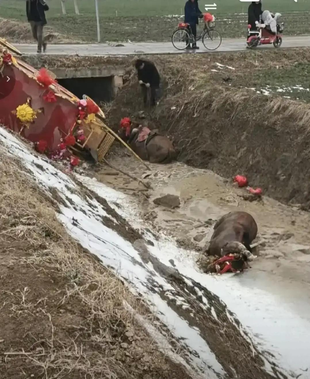 还好,人都没事,马还是骡子,也都没事! 近日,发生在河南周口麦田路边的小意外,引起网友们的热议。 有惊无险,车掉沟里后,新人被迅速救了出了,没人受伤。 事故原因是什么并不重要,对于这辆婚车的运营商来说,可不是什么好事! 我记得小时候,在河南老家走亲戚、赶火车,坐的最多的是爷爷的架子车! 爷爷把车推出来,套上骡子,虽然有些颠簸,但是,人在车里裹上一床被子,暖意融融! 掉沟里这辆车太高大了,有点欧式风格,看来可能是水土不服,咱们的骡马还不适应!