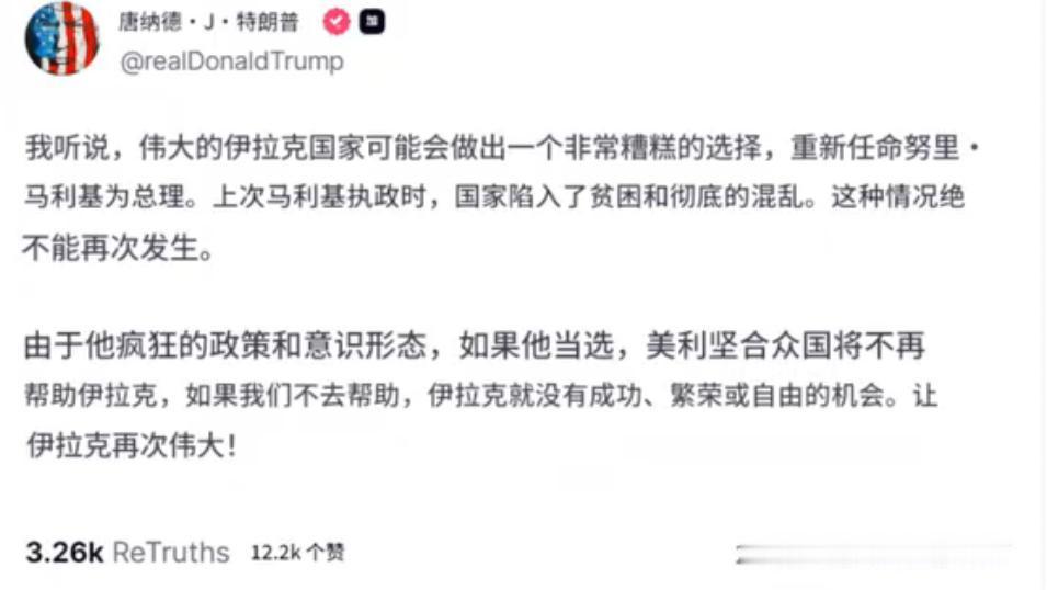 叙利亚朱拉尼访俄,伊拉克马利基公开反对特朗普,美国在中东这是罩不住了?这两个国家都还有美国驻军,但似乎都不太给美国面子。 首先是伊拉克前总理马利基,由于被提名新一任总理,特朗普28日发文表示强烈反对,并威胁如果他上任将切断对伊拉克的援助,没想到马利基当日就发文回怼:坚决但对美国公然干涉伊拉克内政。 其次是叙利亚朱拉尼,之前还访问美国与特朗普会谈表现的很融洽,前一阵就发兵把美国的盟友库尔德武装给剿了,夺回了油田。现在更是亲自访问莫斯科,与普京也表现的一副其乐融融的样子。 美国在这忙活了半天,似乎效果并不如预期,虽然两国前政府都被美国推翻了,但是新上来的人感觉也不是那么听话。