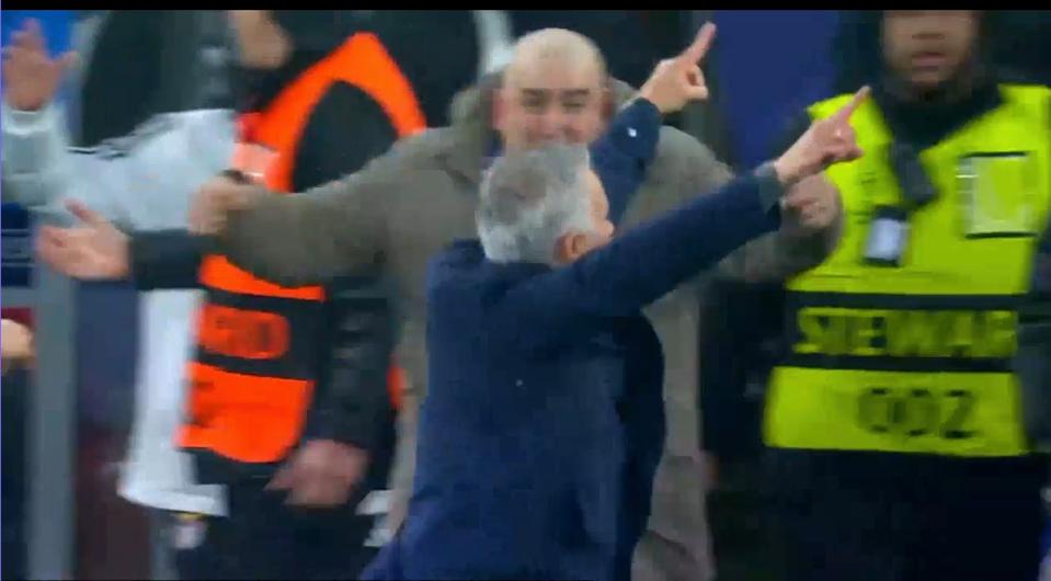 赢下皇马,穆里尼奥的庆祝! 吓死了,本来他都快下课,在葡超拿不到冠军,不如波尔图稳定。 几乎在欧冠也要被淘汰,神奇绝杀皇马。[赞]