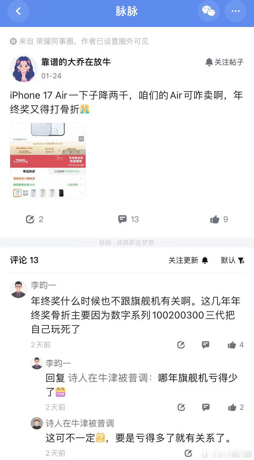 iPhone Air一下降价2000元,让荣耀员工都担心起来了,荣耀最近几款走量机型都卖的相当不错,尤其是荣耀500系列,我觉得大可不必担心年终奖吧