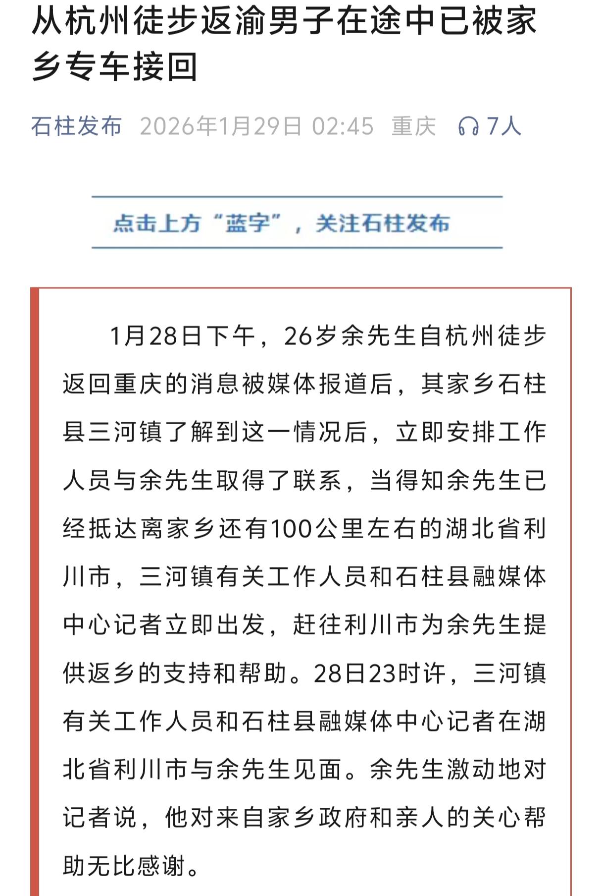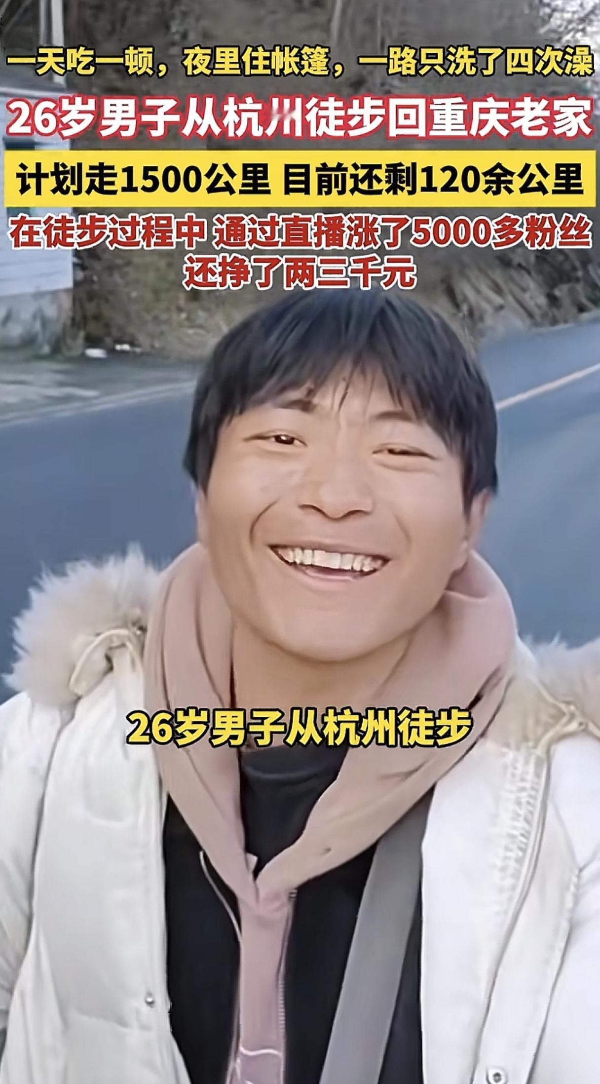 从杭州徒步回重庆的26岁小伙,今日凌晨已被家乡专车接回家了!昨天小伙上了热搜后,