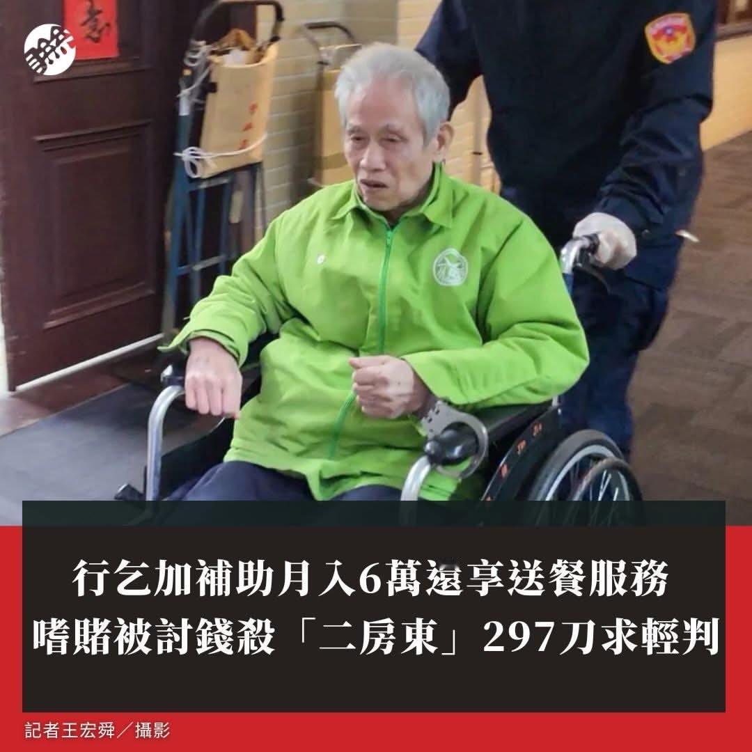 1月20日,台湾省高等法院审理一起杀人案,凶手名叫陈进财,作案时70岁。他在如此高龄之际,居然还能砍凶手297刀。开庭时,凶手坐轮椅出庭,声称自己“智能不足”、活不到90岁,符合自首减刑条件。 两年前,嫌犯陈进财长期租住台北市万华区民和街一处房屋的雅房。被害人颜姓男子当时78岁,而且双目失明,是该房屋的“二房东”。 陈进财嗜赌,常向颜男借钱,积欠房租及借款约7-8万元。颜男多次催讨,双方常起争执。 2024年6月9日上午,颜男再次催债,陈进财盛怒之下,先持剪刀狂刺38下,再换菜刀猛砍259下(总计297刀)。被害人头骨碎裂、脑浆外溢、颈动脉断裂,脏器外露,当场惨死。 杀人后,陈进财换掉血衣血裤,搭火车逃到新竹老家,之后在新竹都城隍庙附近超商借手机报警自首。 台北地检署依杀人罪对他进行起诉,台北地方法院一审判处19年有期徒刑。检方认为量刑太轻,应该判死刑或无期,陈进财认为太重,双方上诉。 陈进财靠行乞加补助月入约6万元,还享受送餐服务,嗜赌如命。网友惊叹70岁还能砍这么多刀,可见其为人非常凶狠,这么老了还这么坏。