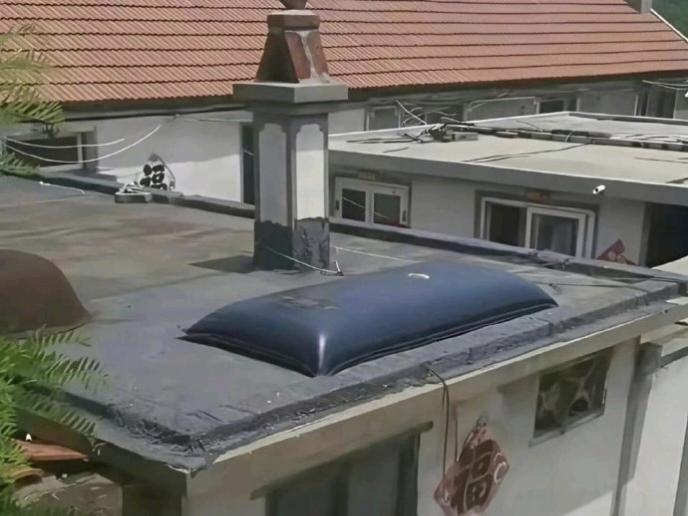不懂就问,这是做什么的? 路过农村屋顶看到这东西,黑乎乎的还会鼓起来...我赌90%的人不知道这是啥!😂 知道的麻烦评论区说下,这玩意儿能存几吨水? 农村神器 猜猜这是什么