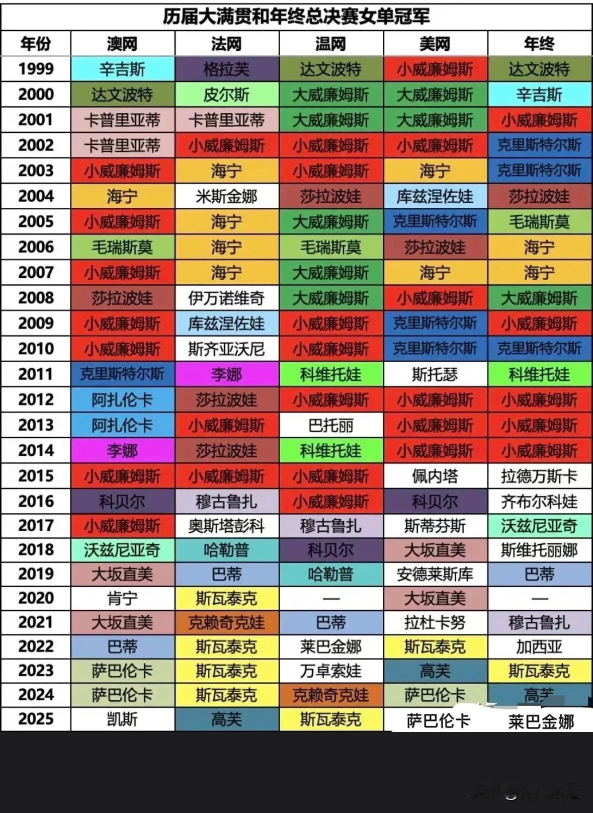 阿卡和辛纳包揽24、25年八个大满贯男单冠军,这势头简直太猛了。从现役大满贯数看