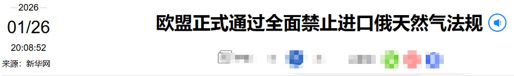欧盟这回算是彻底“豁出去”了 1月26日,欧盟27个成员国通过议会决定,宣布在2027年底前,全面停止进口俄罗斯天然气,管道天然气则在2027年9月份停止进口。 在俄乌冲突没爆发的时候,欧盟40%以上的天然气都来自俄罗斯,说白了,欧洲很多国家的供暖、发电,还有工厂运转,都得靠俄罗斯的廉价天然气撑着。那时候大家相安无事,欧盟享受着低价能源的便利,俄罗斯也能靠出口天然气赚得盆满钵满。 但俄乌冲突爆发后,一切都变了,欧盟觉得继续依赖俄罗斯天然气,就是把自己的国家安全攥在别人手里,尤其是波兰、波罗的海三国这些国家,一直催着欧盟加大对俄罗斯的制裁,彻底切断能源联系。 除了地缘政治的考量,背后还有美国的影子,这一点很少有人明着说,但其实大家都清楚。俄乌冲突后,美国趁机抢占欧洲天然气市场,把自己的液化天然气卖给欧盟,价格比俄罗斯的管道气高出差不多30%,仅2025年一年,美国就从欧洲天然气市场赚了上百亿美元。 欧盟这次彻底禁运俄气,某种程度上也是在迎合美国,想靠这种方式稳住和美国的关系,可这样一来,欧盟自己的民众和企业,就得为这份“迎合”买单。 可能有人会问,欧盟就不能找其他地方的天然气替代吗?其实欧盟也在努力,但替代的代价,远比大家想象的要大。 欧盟现在主要靠美国的液化天然气和挪威的管道气填补缺口,可挪威的气田已经达到了产能上限,根本没法再增加供应,卡塔尔的新产能要到2027年才能落地,刚好赶上欧盟禁运俄气的时间点,能不能衔接上还是个未知数。 更麻烦的是,欧盟的天然气基础设施根本跟不上,新建液化天然气接收站需要时间,而现在距离2027年只剩下一年多,很多成员国连接收站都没建好,到时候就算有替代天然气,也运不进来、存不下。 更让人揪心的是,现在欧盟的天然气储气率已经跌到了59.9%的危险低位,荷兰甚至低到了46.1%,要是遇到极端寒冬,很多民众可能连暖气都用不上。 大家可以想想,冬天没有暖气,普通老百姓怎么过?而且欧盟还规定,到2026年3月1日,每个成员国都得制定自己的天然气供应多元化计划,还要申报所有剩余的俄罗斯天然气供应合同,不遵守规矩的,个人最高要罚250万欧元,公司最高要罚4000万欧元,这份严厉的规定,看似是在推动计划落地,实则是在逼着成员国硬扛。 其实欧盟的“豁出去”,早就让自己付出了代价。从2022年到现在,欧盟因为对俄罗斯的制裁,自身出口损失已经达到了480亿欧元,而能源成本上涨给制造业带来的损失,更是超过了2000亿欧元,失业率也涨到了8.3%。 德国作为欧盟的经济领头羊,受影响最大,德国家庭的年均能源开支,从2021年的4120欧元涨到了现在的5407欧元,涨幅超过30%,很多低收入家庭连能源账单都交不起。 工业方面就更惨了,德国化工巨头巴斯夫多次警告,高昂的能源成本会迫使它们把生产线迁到国外,现在德国45%的能源密集型企业,都在计划转移生产基地,中国湛江的巴斯夫一体化基地,总投资超过100亿欧元,就是最好的证明。 不光是德国,保加利亚的木柴价格翻了三倍,很多低收入家庭只能去捡树枝取暖,法国巴黎日均停电3.4小时,意大利甚至强制降低公共机构的供暖温度,这些都是欧盟民众正在承受的痛苦。 更讽刺的是,欧盟一边喊着要禁运俄气,一边却还在大量进口俄罗斯的液化天然气,2025年俄罗斯亚马尔项目76.1%的液化天然气都运往了欧洲,还给俄罗斯创造了72亿欧元的收入,欧洲的港口,甚至成了俄罗斯天然气的“物流中转站”。 欧盟嘴上说得强硬,实则还是离不开俄气,这种自相矛盾的做法,也让很多人质疑,这次的禁运决议,到底是真的想摆脱依赖,还是只是一场政治作秀。 而且欧盟的禁运,不仅伤了自己,也让俄罗斯加快了“向东转”的步伐,2025年俄罗斯对亚洲的天然气出口占比已经提升到了58%,中国、印度成了主要的增量市场,全球天然气贸易格局,正在因为欧盟的这个决定被彻底重塑。 说到底,欧盟这次彻底“豁出去”禁运俄气,就是一场不计代价的战略豪赌,赌自己能快速找到替代能源,赌内部能团结一致,赌能摆脱外部地缘政治的牵制。 但从目前的情况来看,这场赌局,欧盟未必能赢,内部分裂的隐患、能源基础设施的短板、民众和企业的不满,还有替代能源的高昂成本,每一个问题都足以让这场禁运计划功亏一篑。 这场禁运没有赢家,俄罗斯失去了欧洲这个大市场,欧盟则要承受内部分裂、经济下滑、民生承压的多重代价,而普通民众,终究是这场地缘博弈中最无辜的受害者。 那么大家觉得,欧盟真能扛到2027年,彻底停止进口俄罗斯天然气吗?欢迎在评论区留下你的看法。