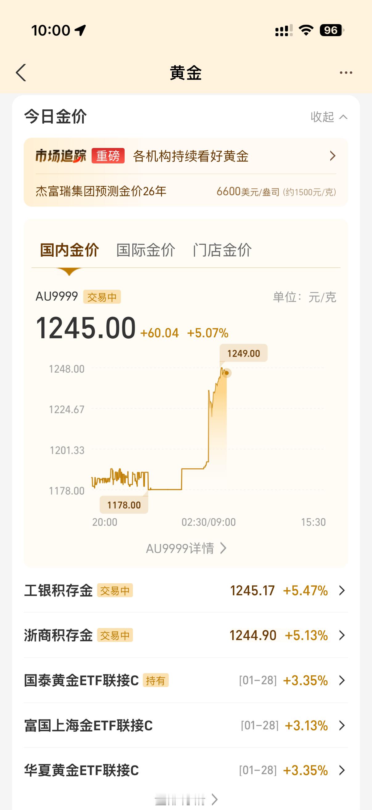 金饰克价涨至1708元今天起床一看这让我惊醒了涨了五个点今天一过我的收益不得50