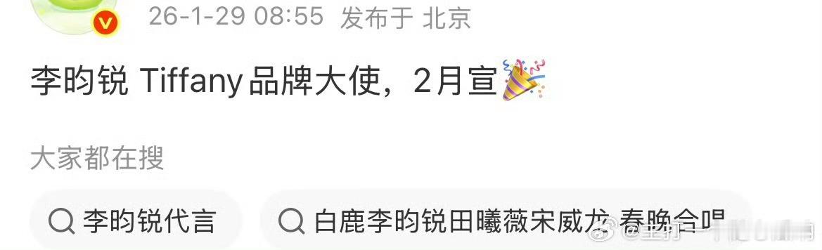 李昀锐商务越来越好了!拿下Tiffany品牌大使!