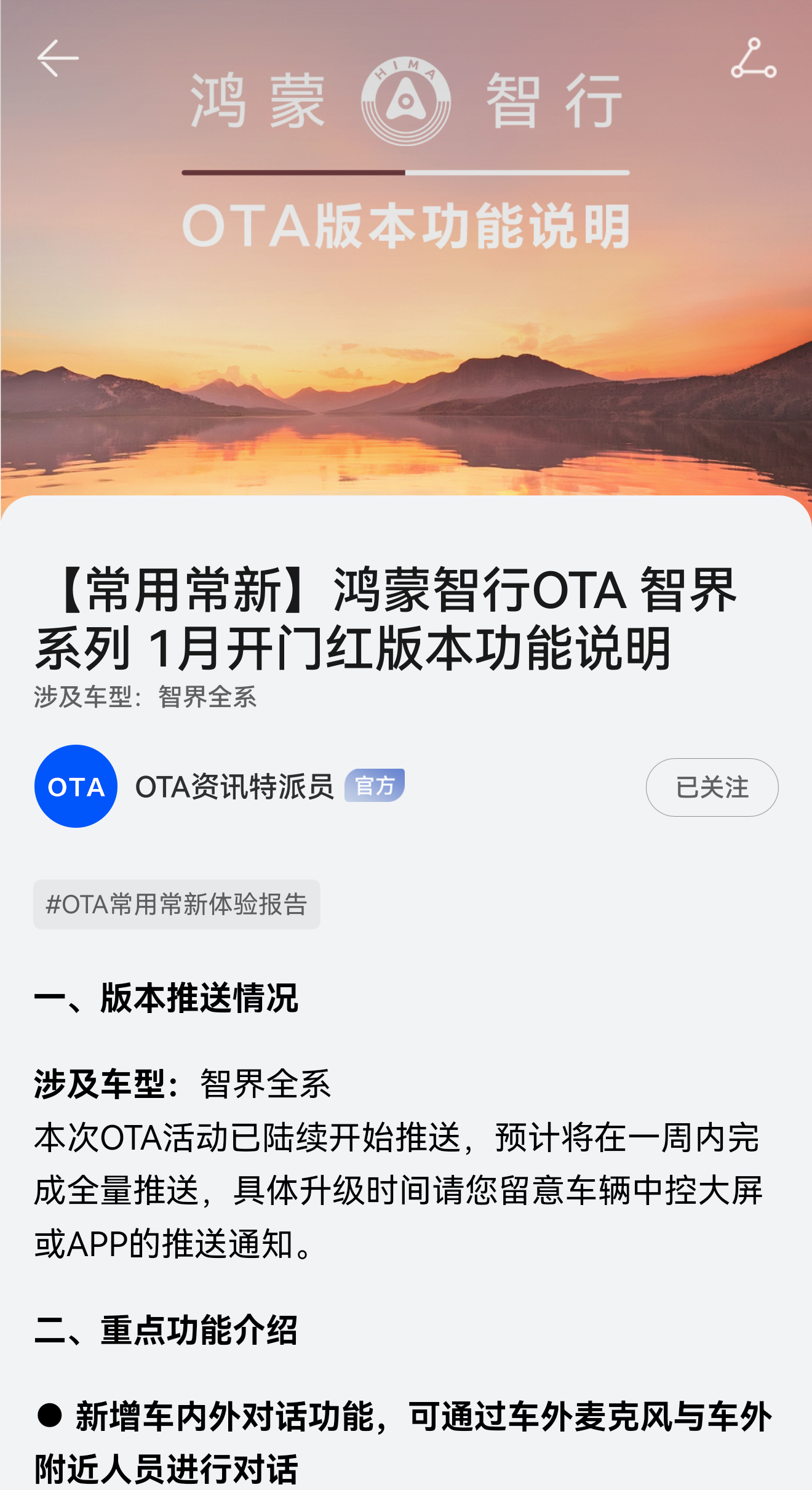 今天开始,智界汽车开启开门红OTA升级。刘亦菲语音包来啦我将第一时间体验高颜出行搭子刘亦菲鸿蒙智行智界品牌大使与鸿蒙智行共赴新程智界汽车新春购车权益加码