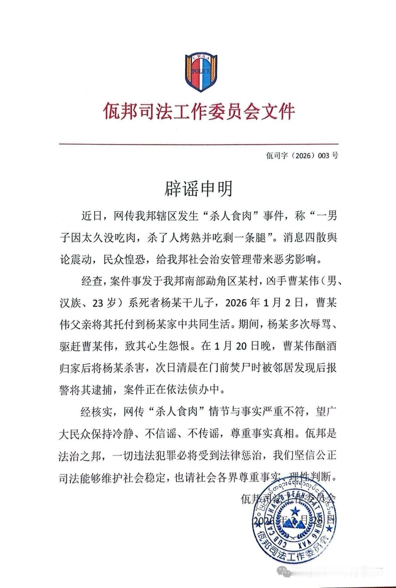 佤邦发布辟谣声明! 博主从一开始就知道是假的,哪有吃小孩的?所以之前发消息,认为是吃了野生动物,之后被抓而已。但是现在是家庭矛盾,导致的一起凶杀案,并不是什么吃小孩,造谣力度太大了。所以佤邦要紧急辟谣,这就是佤邦的谣言而已。 至于谣言的来源点有很多,博主找到最早的证明,是来自于缅北佤邦的贴吧,也就是图三。这人也是佤邦勐波县的一名佤邦人员发的消息。由于是佤邦自己的人员消息,所以谣言迅速传播开来。 不知道这名佤邦自己的人员,到底是咋想的,竟然爆料自己佤邦的谣言,直接让消息得到了疯狂的散播,之后头条、微博、贴吧等论坛,开始大量散播这样的虚假消息。 博主从一开始就不信,因为佤邦有很多瘾君子,根本不懂法律法规,直接乱发谣言。佤邦军队应该尽快拿下这位乱发谣言的佤邦人员,直接就判了就行,造成了太恶劣的影响!