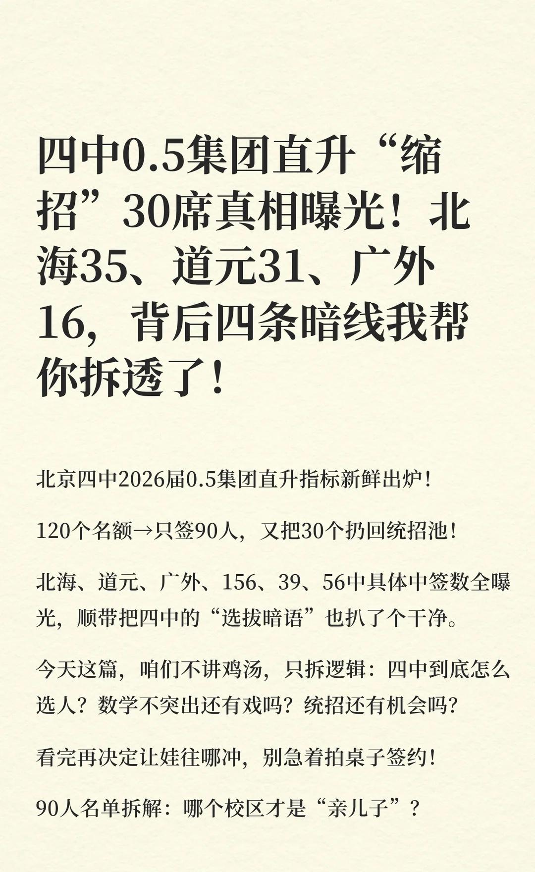 四中0.5集团直升“缩招”30席真相曝光! 学业规划 择校 升学 多元升学途径 中考成绩 家长必读 中考 四中 名校