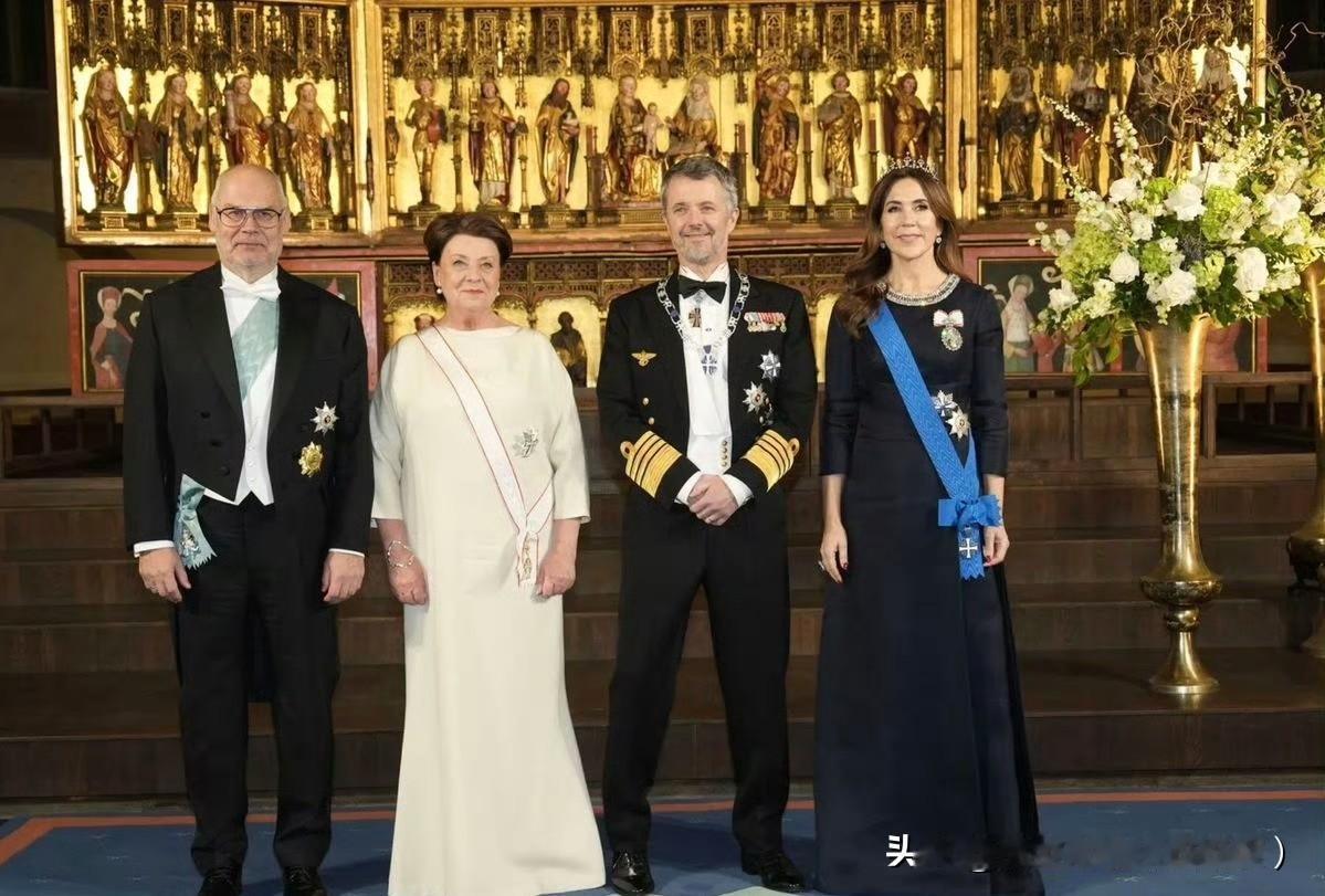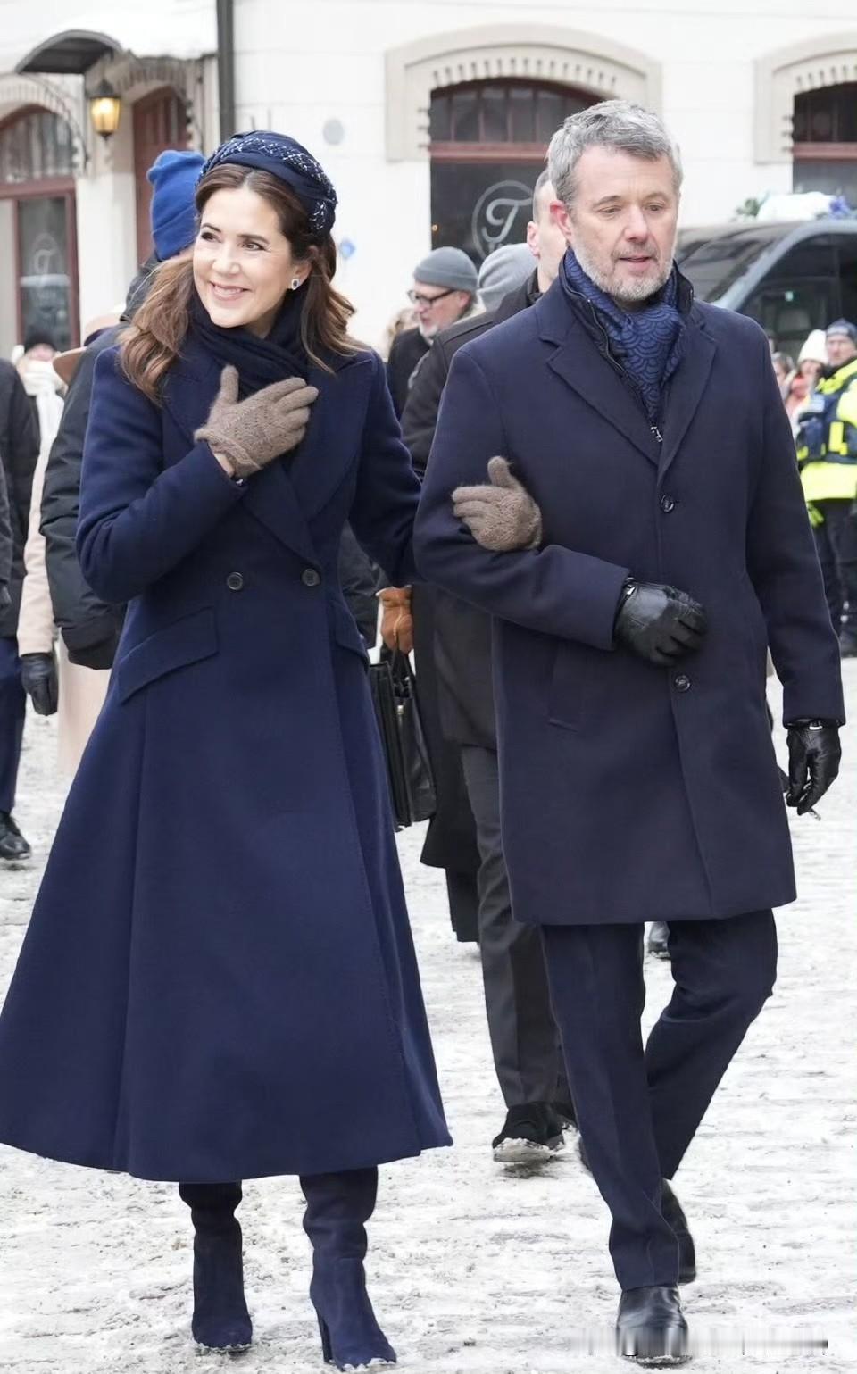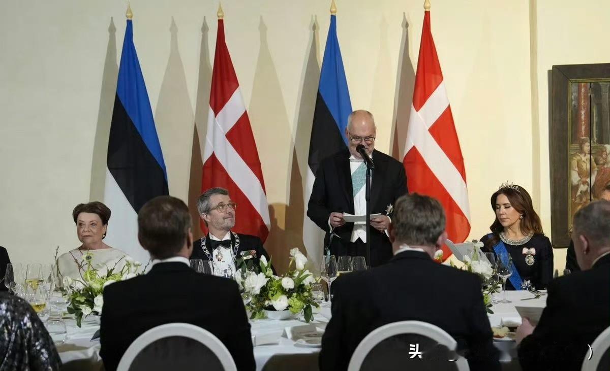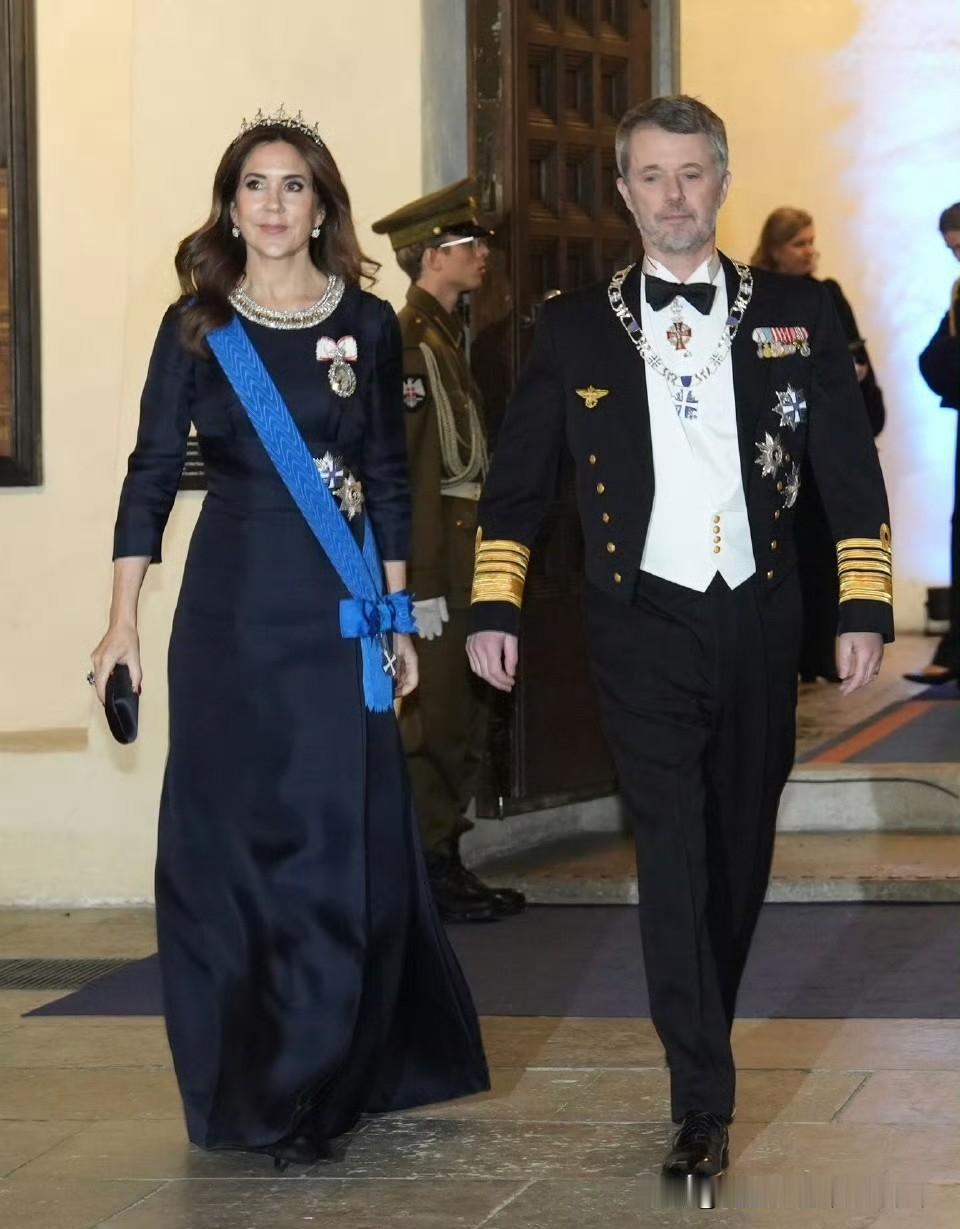 国王夫妇访问爱沙尼亚🇪🇪玛丽王后这次不管是大衣外套还是晚宴礼服,都选择了藏蓝色!夜间礼服来自Prada。