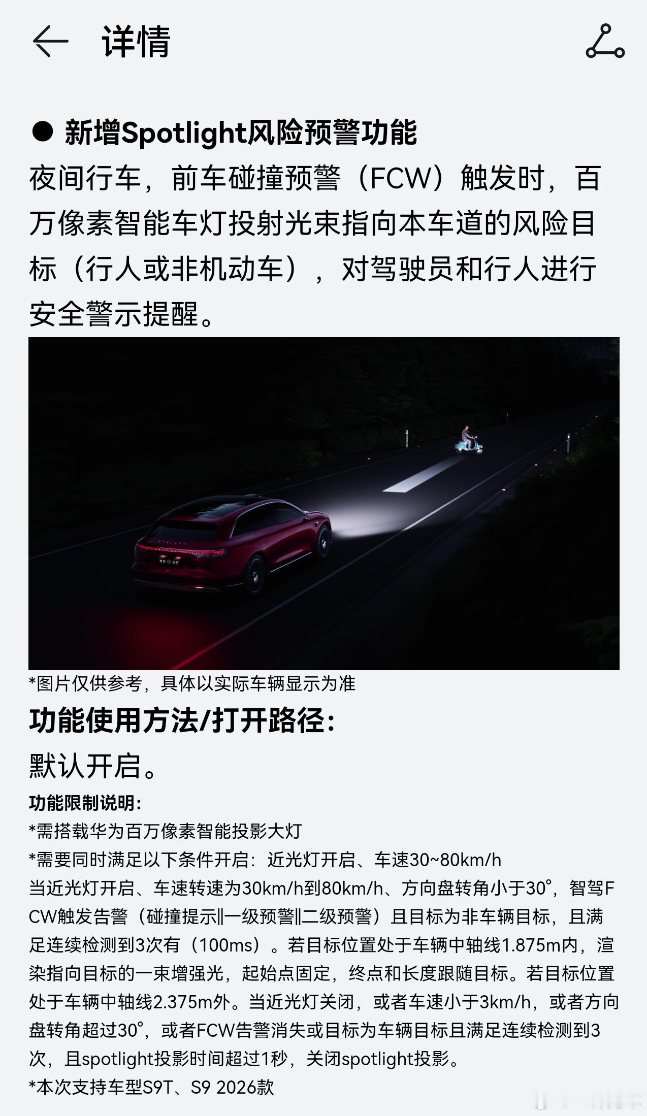 我的享界s9t的spotlight功能来了!出发FCW时百万像素大灯投射光束指向