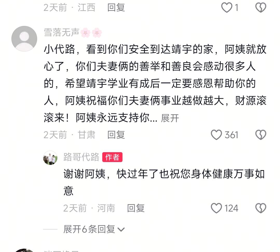 我预料到了靖宇可能会出来澄清 也预料到了路哥路嫂会,无微不至的照顾靖宇 但万万没想到有人说靖宇的房子不差,条件应该好,这个真万万没想到,有人这样的看的? 说实话,最近刷到靖宇的视频真的有点感慨,本来以为是件暖心的帮扶故事,结果评论区吵翻了天——有人盯着她老家的房子说“条件不算差啊”,我晕,这也太以偏概全了吧?今天就来跟大家唠唠这事儿,全程都是实打实的细节,不骗你! 路哥当初刷到靖宇的情况,没多想就开车往湖南跑,本来想简单了解下情况,结果到了当地才发现,靖宇家的难处根本不是镜头能拍全的。核实清楚后,路哥直接拍板承担她的大学费用,全程没提任何要求,用别人常说的话讲,这大概就是“种善因”吧。转眼靖宇升大二,寒假被路哥路嫂邀去河南过年,哎呀妈呀,路嫂也太贴心了,提前打听好靖宇的尺码,买了好几套新衣服,连日常吃饭都想着她爱吃的菜。本来想让靖宇多对着镜头说说话,结果发现她紧张到攥衣角,声音小得像蚊子叫,后来才知道她性格本来就内向,面对镜头更拘谨。 老实讲,路嫂提议给靖宇开自媒体账号的时候,我还担心她搞不定,毕竟连说话都害羞,咋拍视频呢?但路嫂说“慢慢练,总能适应”,没想到靖宇居然点头同意了,这波真的太给力了!寒假结束,路哥喊上兄弟开车送靖宇回湖南,一路开了十几个小时,到老家的时候,靖宇家人早把饭菜备好,土鸡、腊肉摆了一桌子,按当地规矩热情招待。我和小伙伴都惊呆了,这哪里是帮扶,明明是家人般的惦记啊! 本来这事儿挺圆满的,结果视频发出来,有网友盯着靖宇家的房子说“条件尚可”,甚至有人说“没必要帮扶”,真的让我郁闷!坦白说,房子外观看着还行,但里面的难处只有自己知道。后来靖宇更新视频回应,细细说了家里的收入来源和开支压力,说“路哥路嫂的帮助像救命稻草”,还承诺会好好努力回报。有人说这是作秀,胡扯!路哥送她回家时,特意避开镜头让家人好好团聚,这种细节骗不了人。 总之,我想说的是,其实这事儿最让人纠结的是,大家总爱用眼睛看到的下结论,但日子过得好不好,从来不是一套房子能定义的。路哥路嫂没纠结“条件够不够差”,只想着“能不能帮一把”,这大概就是别人说的“渡人也是渡己”吧。你说是吧? 靖宇搬家拉货车 靖宇女 路哥路嫂