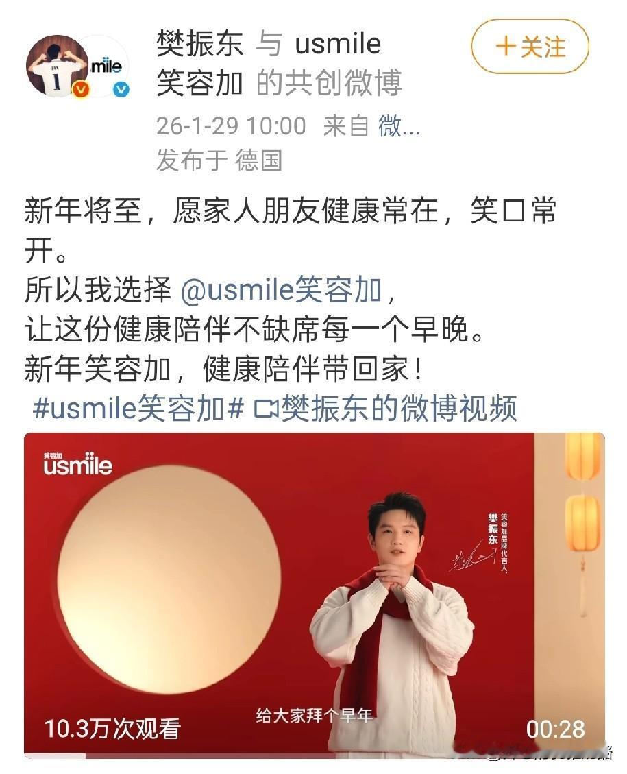 樊振东又更新了,是给大家拜早年。 樊振东又解锁新代言,红色的小胖很喜庆,远在德国心系家人朋友。 发现樊振东现在很快乐,没有在国内打比赛时的严肃,整个人的状态特别好。 伦敦世乒赛,网友都期待樊振东的名字出现在大名单上,这样才可能卫冕冠军。 不知道现在乒协的想法,更不知道小胖的想法,也许只是球迷的一厢情愿。 现在网络大环境还不好,用小胖的话说,输不行赢也不太行,也许只有远离才会相安无事。 喜欢小胖的球迷会意难平,国乒男队当前也很难,但愿乒协能做出正确选择。 图片来自网络侵权可删。