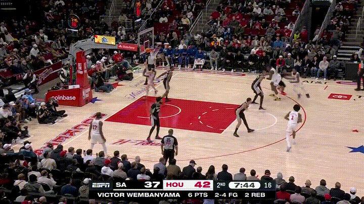 火箭球星阿门-汤普森真是太悲催了,他惨遭文班亚马的无情隔扣!在今天火箭主场迎战马刺的比赛中,当时比赛进行到了第二节的七分多钟,阿门的传球被文班亚马完成了抢断,随后文班亚马在快攻反击中接队友卡斯尔的传球迎着阿门的防守完成了一记非常残暴的单臂空接隔扣,阿门彻底的成为了文班亚马的背景。