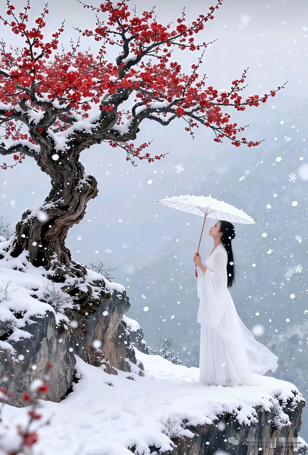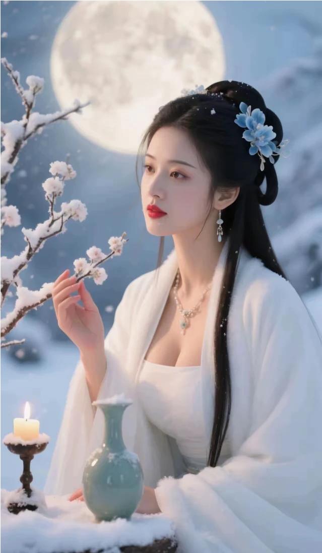原创诗联首发 续诗《冬景》 银汉芦花作雪飞, 神州一夜素绡围。 冰河如鉴凝霜色, 玉树琼花银微微。