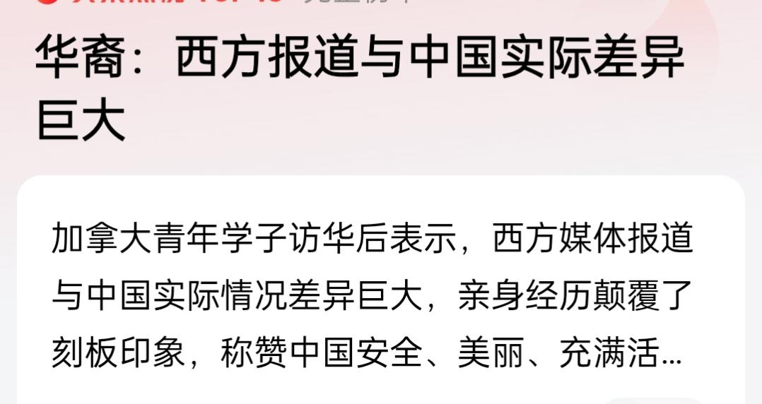 西方媒体彻底塌方了!西方媒体妖魔化报道中国由来已久,信息不透明让它们占尽先机,但现在的互联网高度发达,交通足够发达,西方来中国访问的人员反倒成了它们的倔墓人,这些来访人员的亲身经历和所见所闻更有说服力,真实的中国让来访人员惊掉下巴。 看来中国的文化工作者大有可为,宣传力度远远不够,应加强对外宣传力度,彻底戳破西方媒体的谎言!