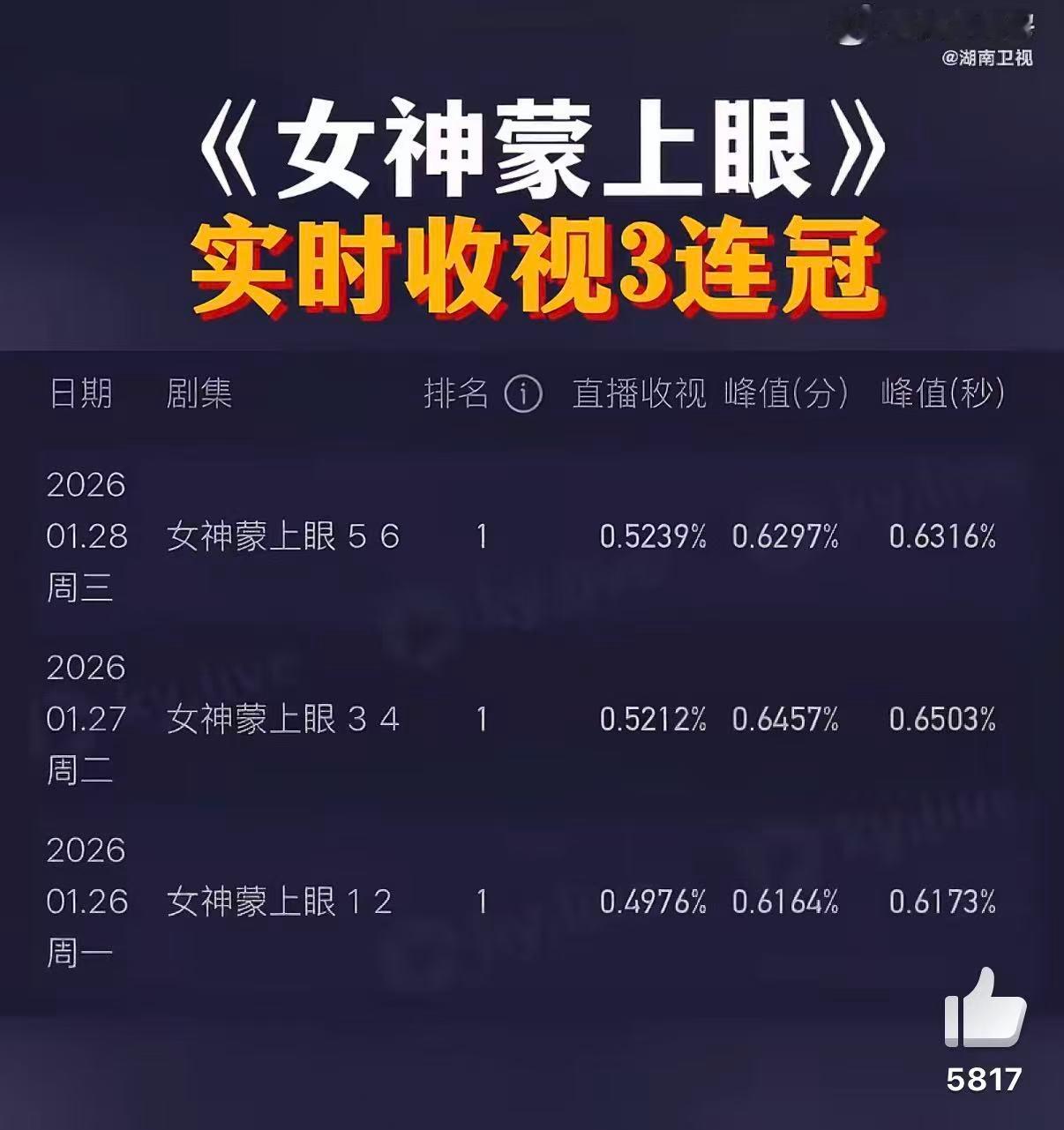 辛芷蕾女神蒙上眼收视三连冠了!!!连续三天领跑卫视黄金档,蕾子国民度真的可以辛芷蕾也变成爷奶爱看的那挂了