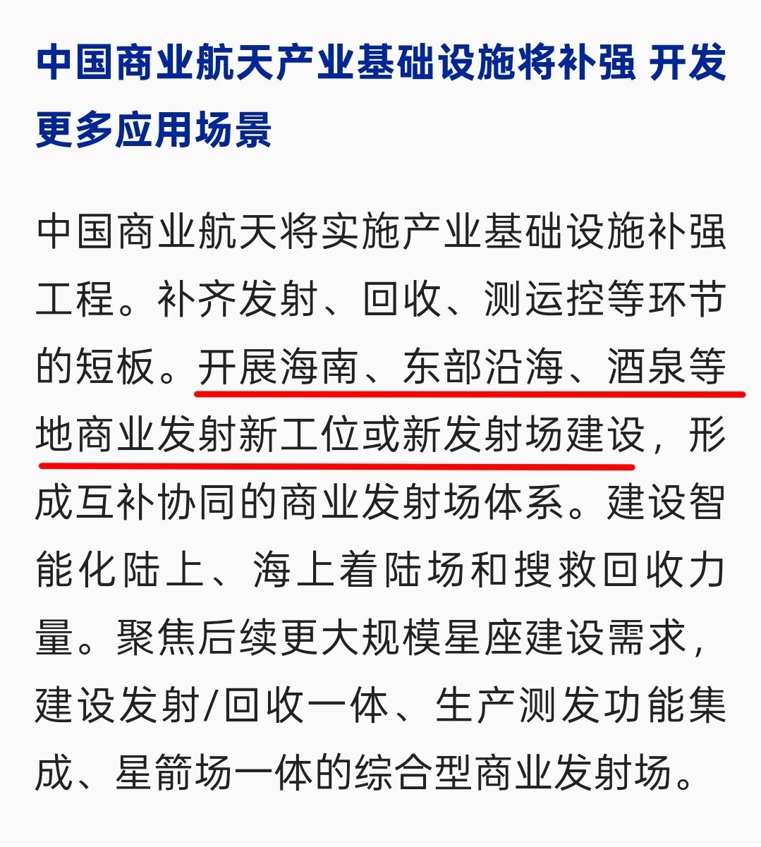 我国将开展海南,东部沿海、酒泉等地商业发射新工位或新发射场建设