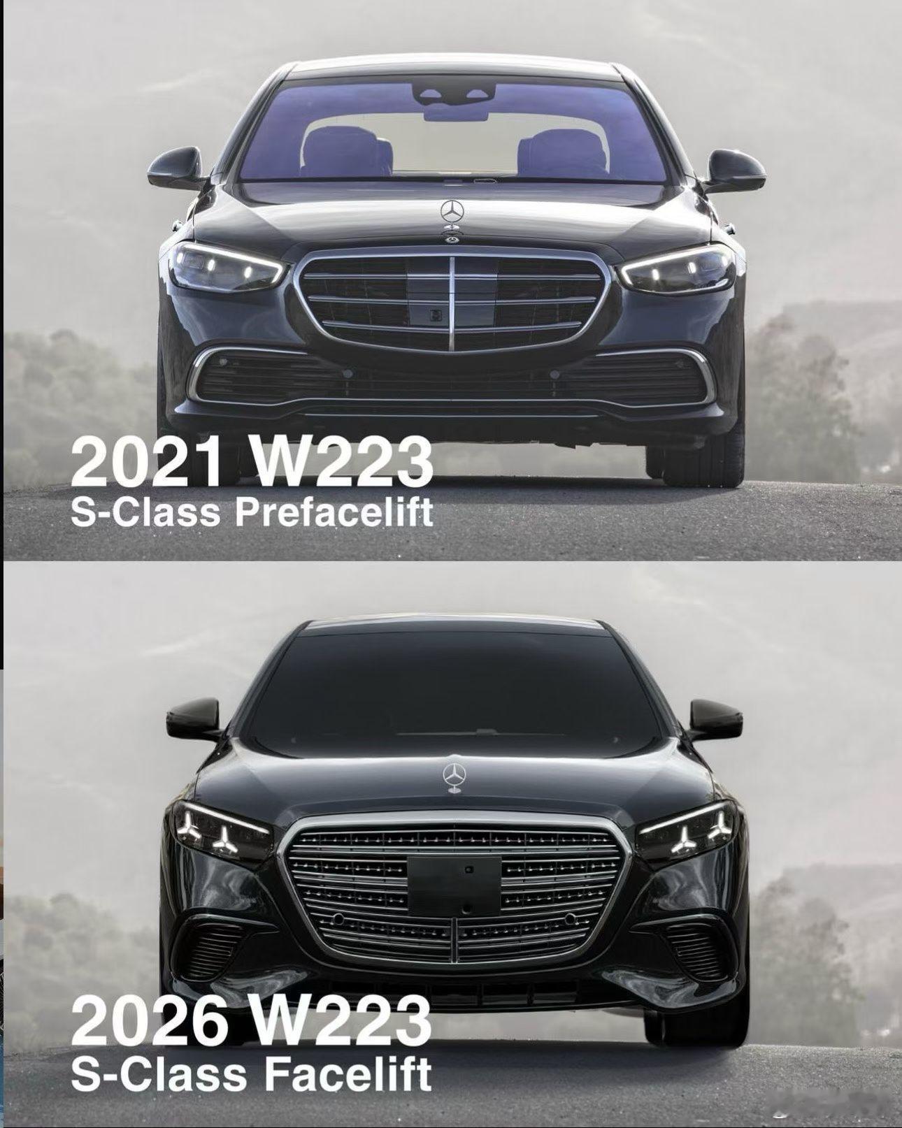 新款奔驰S,嘴更大了,眼神更情绪化了,表情更狰狞了,感觉整张脸快被格栅挤变形了,中间硕大的黑色塑料不会是放牌照板的吧,还是大家心中的那台虎头奔吗?