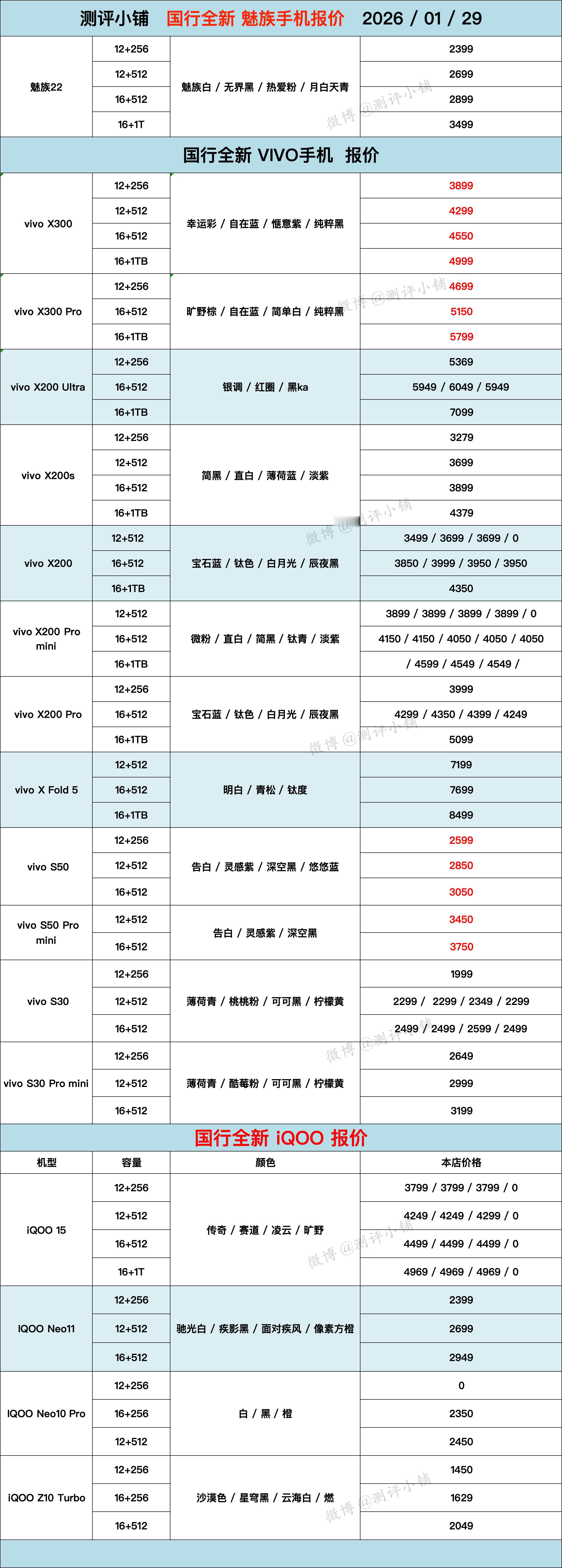 01-29国行全新机,华为Mate80 Pro Max,Nova14系列,iPhone17系列,小米17 Pro Max,红米K90 Pro Max,荣耀500等更新。