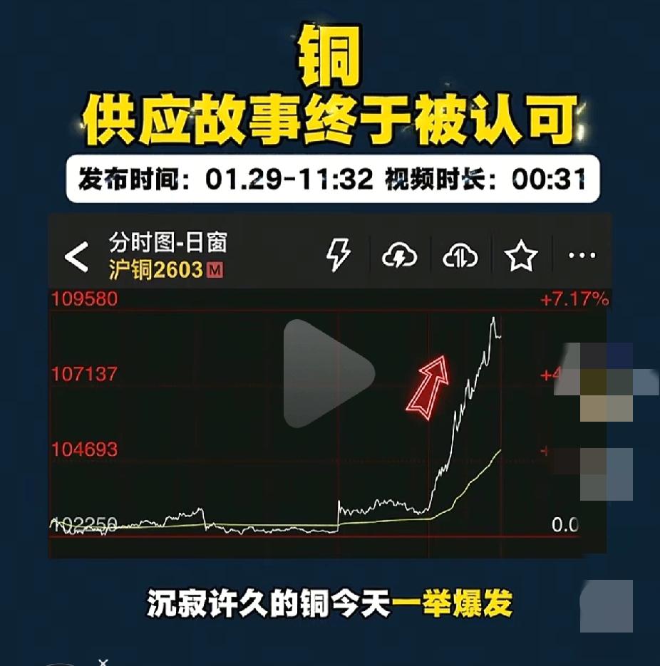 今天的铜 彻底爆发了! 盘中直接飙了快6个点,为啥这么猛?两大推力,直接拉满! 第一,矿出问题了,而且是“顶流”矿企。 海外巨头sudden COPPER(突发铜业)刚对核心会员放了风:2026、2027年,它的铜产量要往下掉! 简单说,就是能挖出来的“富矿”变少了,得挖更多石头才能炼出一样的铜。 第二,黄金涨疯了,钱开始找“下一个故事”。 这几天海外市场都在热聊“金铜比”。黄金历史新高之后,巨量资金眼睛就开始四处扫射:谁还有潜力?谁还有大故事?