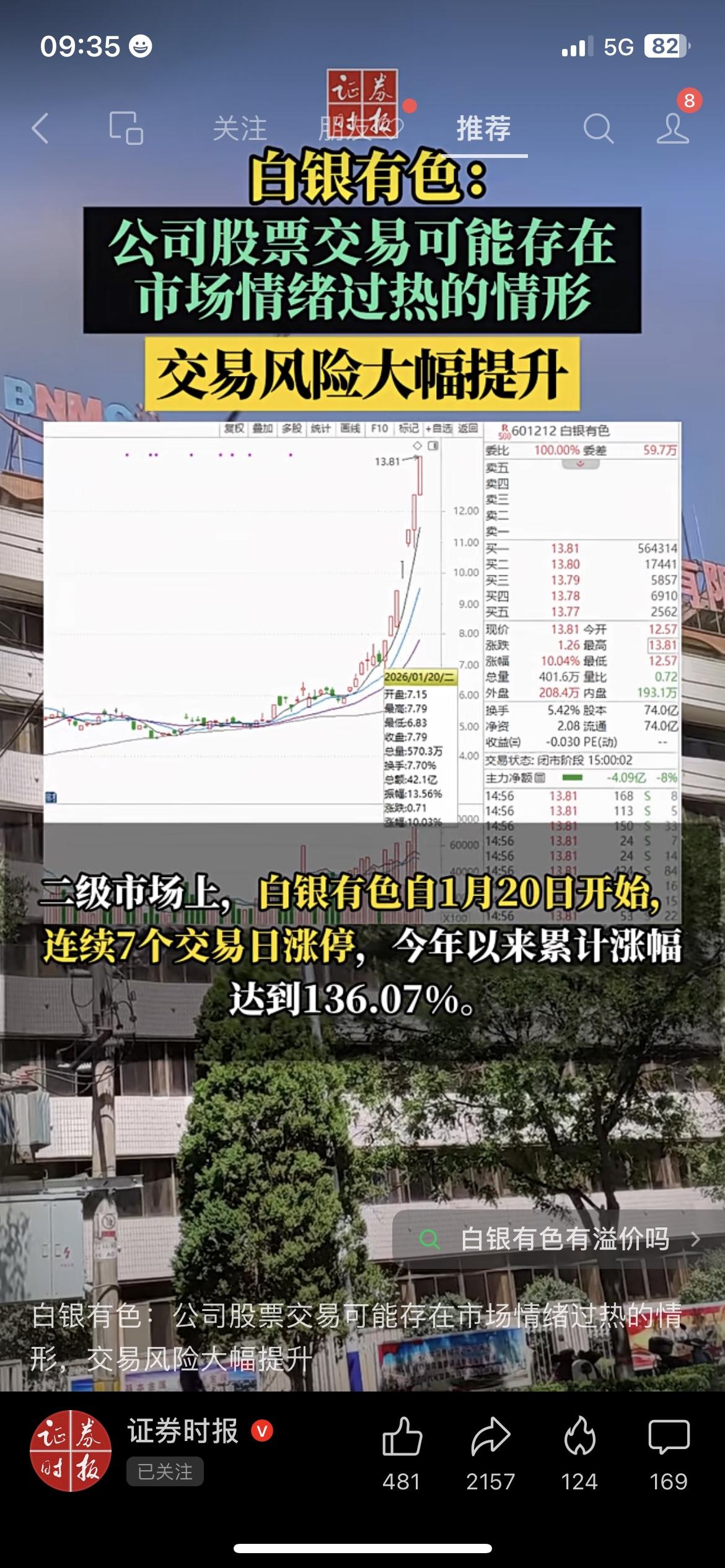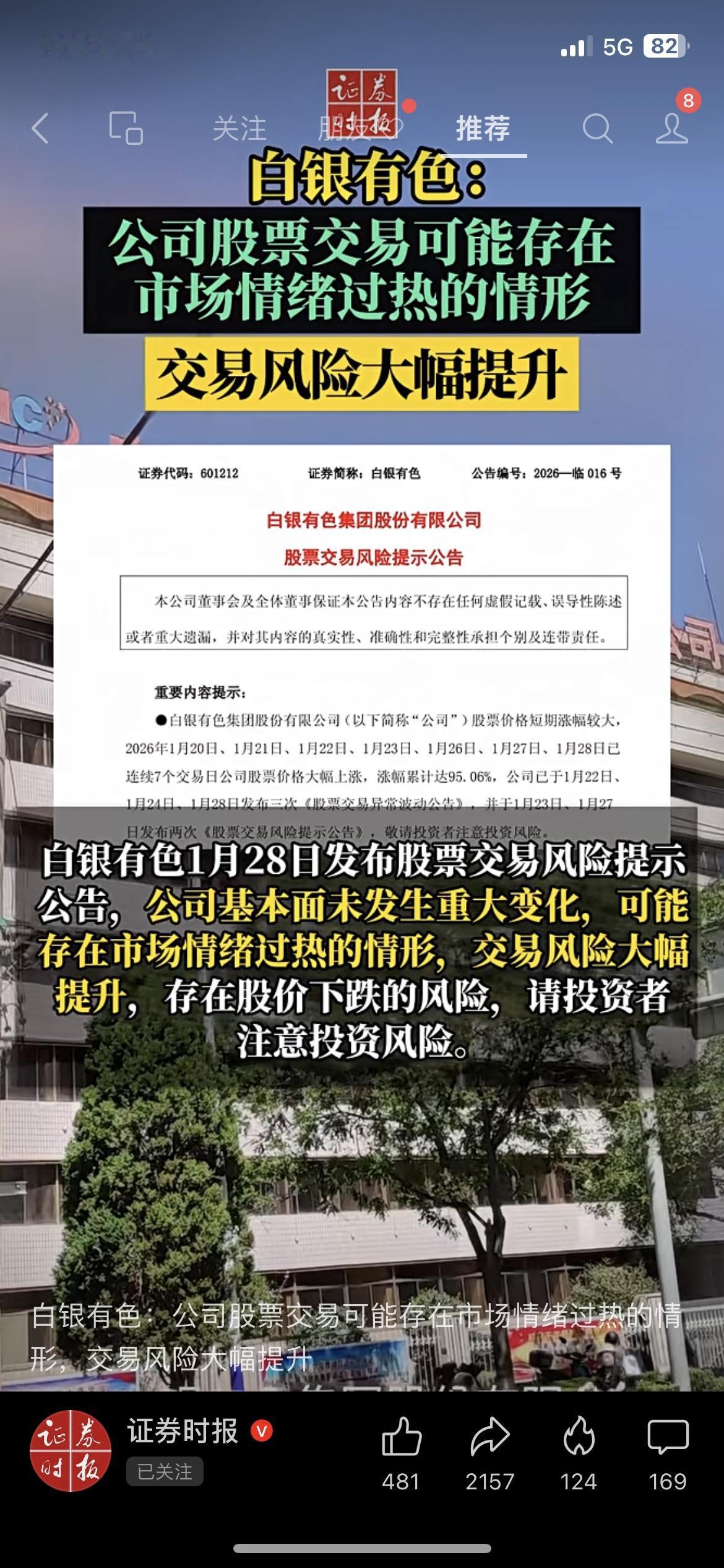 7连板后紧急预警!白银有色仅才4.54%白银营收 白银有色连拉7个涨停,今年涨超