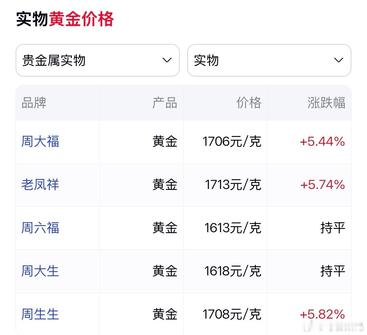 金饰克价一夜大涨104元金饰价涨到1700了都,以后估计也是越来越贵,准备结婚买三金的预算又得提了吧