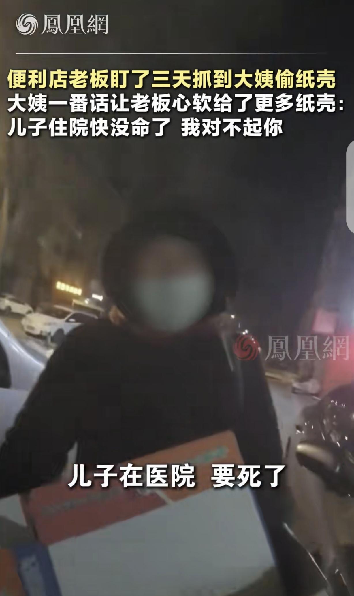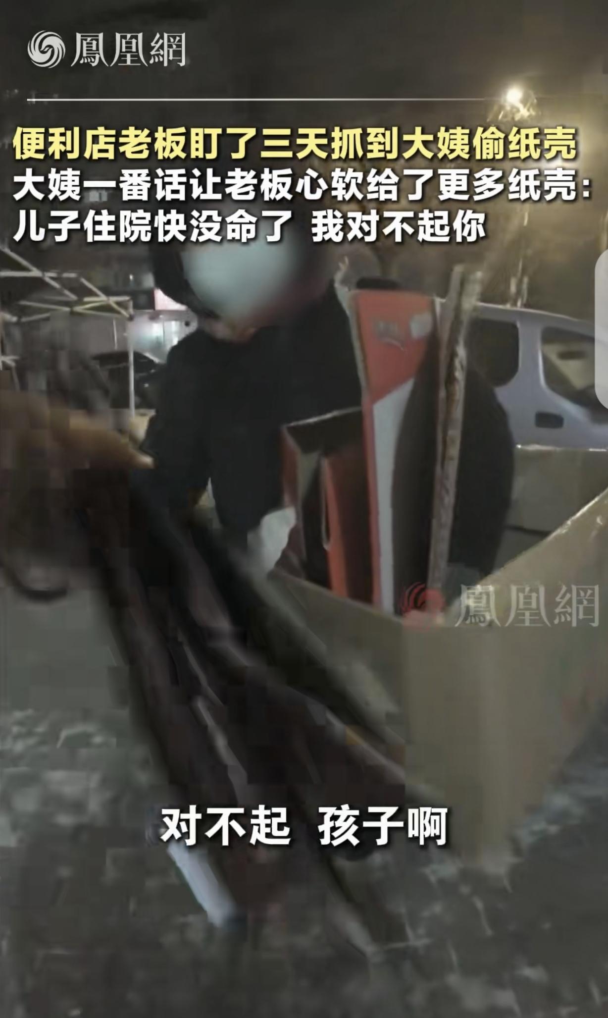 黑龙江哈尔滨,一男子开超市,发现自家纸箱老是丢,他怒了,盯了3天,终于抓住偷纸箱的大妈,万万没想到,大妈一番话,老板一个大老爷们突然泪崩,不但放过了她,还给了她很多纸箱。网友:我的心突然感觉痛,这生活真苦! 一个男子经营着一家超市,说便利店更恰当,这超市虽不大,可每天进进出出的货物不少,自然就攒下不少纸箱。 男子原本想着,等纸箱攒多了,就找个收废品的来处理,多少也能换点钱补贴下超市的开支。 可最近,男子发现纸箱老是莫名其妙地减少。一开始,他还以为是自己记错了数量,没太在意。 但连续几天都这样,他心里那股火“噌”地就冒起来了,这分明是有人偷纸箱,谁啊,光天化日之下偷纸箱,太过分了! 男子气得满脸通红,双手紧握成拳,嘴里不停地嘟囔着,竟然偷到我头上了!他决定,一定要抓住这个偷纸箱的人。 接下来的三天,男子放下手头的活儿,像个侦探一样,躲在超市的角落里,眼睛紧紧盯着那些纸箱。 他心里想着,一定要把这个小偷揪出来,让他知道偷东西的代价。 终于,在第三天晚上,男子在监控里看到一个身影,一位带着黑帽子的大妈,正鬼鬼祟祟地往纸箱堆那边凑。 男子一个箭步冲上去,一把抓住正在拿纸箱大妈的手臂,大声吼道:“我就知道你今天会来,终于让我抓住你了,你别走,都偷多少回了? 大妈被这突如其来的吼声吓得浑身一哆嗦,手里的纸箱差点没掉在了地上。 大妈声音颤抖,带着哭腔说:我儿子在医院要死了,我这没办法,卖纸箱的钱就是为了买点菜,我对不起你,她连说3句对不起。 男子的怒火瞬间被这番话浇灭了。他看着大妈满脸的皱纹,和可怜的眼神,心里一阵刺痛。 大妈跟自己父母年纪差不多,看来她是走投无路了,否则一把年纪了,也不可能不问自取,晚节不保。 男子的眼眶渐渐湿润了,他的手也慢慢松开了大妈的胳膊。 大妈站在那里,身体微微颤抖,眼神里充满了无奈和绝望,双手合十,抹着眼泪说:我儿子在医院呢! 她知道偷东西是不对的,可她实在是没有别的办法了。 男子深吸一口气说:给你吧给你吧,这些纸箱您都拿走吧。 说完,男子又拿了几个纸箱塞到大妈手里。大妈愣住了,她不敢相信自己的耳朵,抬起头,泪眼汪汪地看着男子,一个劲的感谢。 有人说,现在谁吃不上饭的几乎可以说很少,但是治病掏空了治不起的确实这个很多。人要不是难,谁去捡废品?特别是上了岁数的老人,扛工沒人要,捡点破烂维持生活!沒办法!其实你想想,这样寒冷的冬天,有钱谁会这样干呢!除了遇到难事,穷人! 老人家说出这话的时候真假已经不重要了!人不是被逼无奈,谁也做不出如此的举动,所以,没人会拿自己儿子的健康去当说辞,小伙子的做法很对! 以前我把所有的纸盒收集起来卖钱,攒几个月买两块钱,后边我都直接扔垃圾的时候放垃圾桶旁边,让小区的老人们捡起来方便,不用去垃圾桶里翻。每次早上倒垃圾的时候就看到一位保洁阿姨在那里整理纸壳,天黑黑的,就听到声音,看着心里就难受。 天底下的妈妈谁会拿儿子说事?,但凡妈妈这么说自己儿子的,唉唉唉……人到暮年,如果不是走投无路,谁会在零下几十度的大冷天出门偷纸壳? 大姨的话真的太戳心了,不管真假,这份情感流露就足够打动人了, 老板能心软也是善举,世界还是温暖多呀! 是呀,生活有时候就是如此残酷,但在这残酷中,我们也能看到人性的善良和温暖。 男子的愤怒,在得知大妈的困难后化作了善良;大妈的无奈,也让我们看到了生活的艰辛。愿这世间多一些理解,多一些温暖,让每一个在困境中挣扎的人都能感受到生活的希望。 对此,你怎么看?
