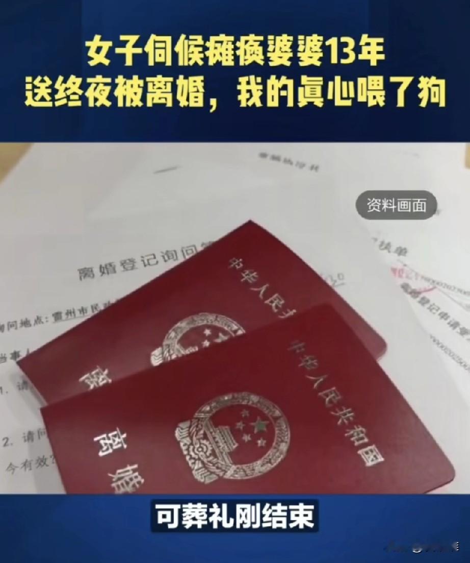 “让人心寒!”山东一女子照顾瘫痪婆婆13年,每天端屎端尿、擦身喂饭,辛苦熬到婆婆去世,没想到丧事刚办完,丈夫立刻对女子提出离婚,只愿给几万块补偿,女子痛哭:“我吃了13年苦,现在年纪大了,也没工作,以后怎么办?”邻居都夸她是好媳妇,可丈夫却在老人走后选择“卸磨杀驴”,真令人心寒。