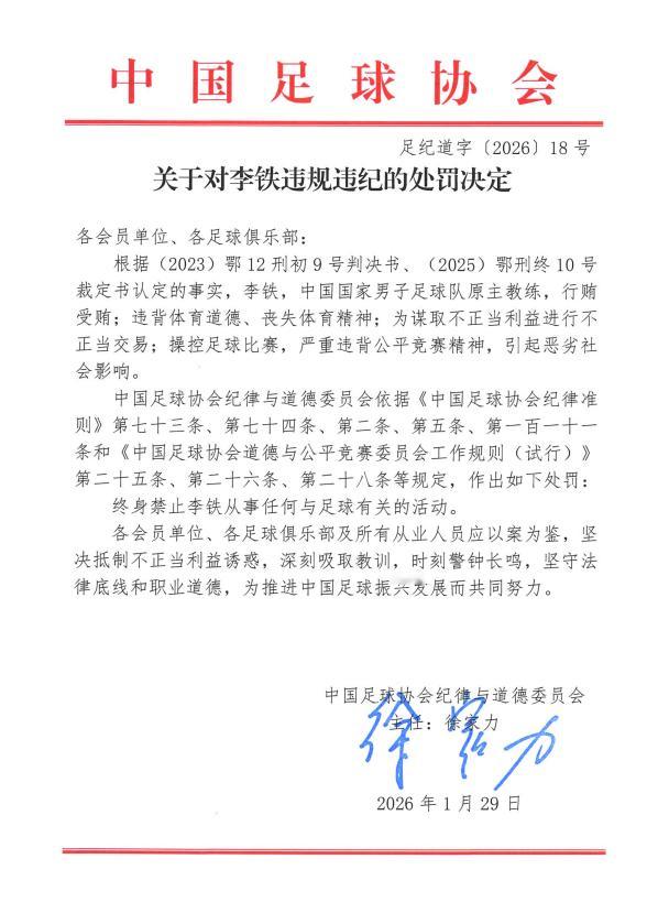 李铁等73人终身禁止从事足球活动李铁、田旭东、忻峰、郑斌以及李勤被禁足,卓尔时代成员拉黑五人足球假赌黑专项整治第二批禁足名单出炉