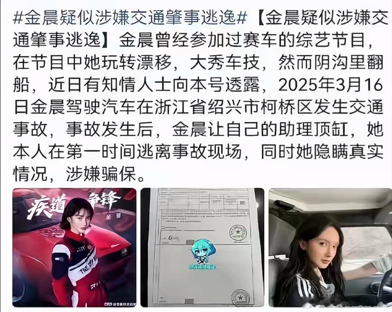 曝金晨肇事逃逸有自媒体报道说金晨在浙江发生交通事故,然后让助理顶包自己跑了等官方