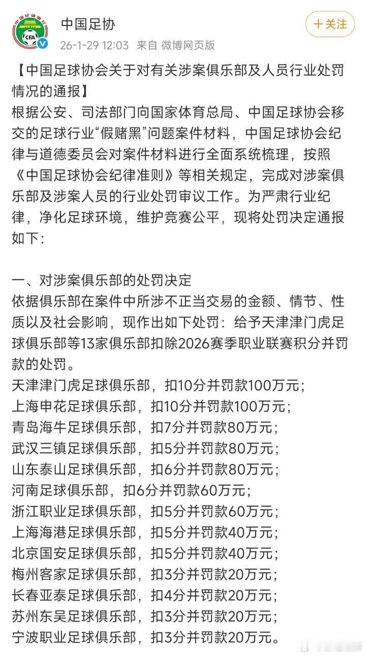 13家足球俱乐部涉假赌黑被罚中超16支球队13支涉嫌打假赌黑。这已经不能算是局部腐败了。这是整个行业塌方。甚至假球赌博黑哨成为了行业的潜规则。中超难怪水平烂成这样。