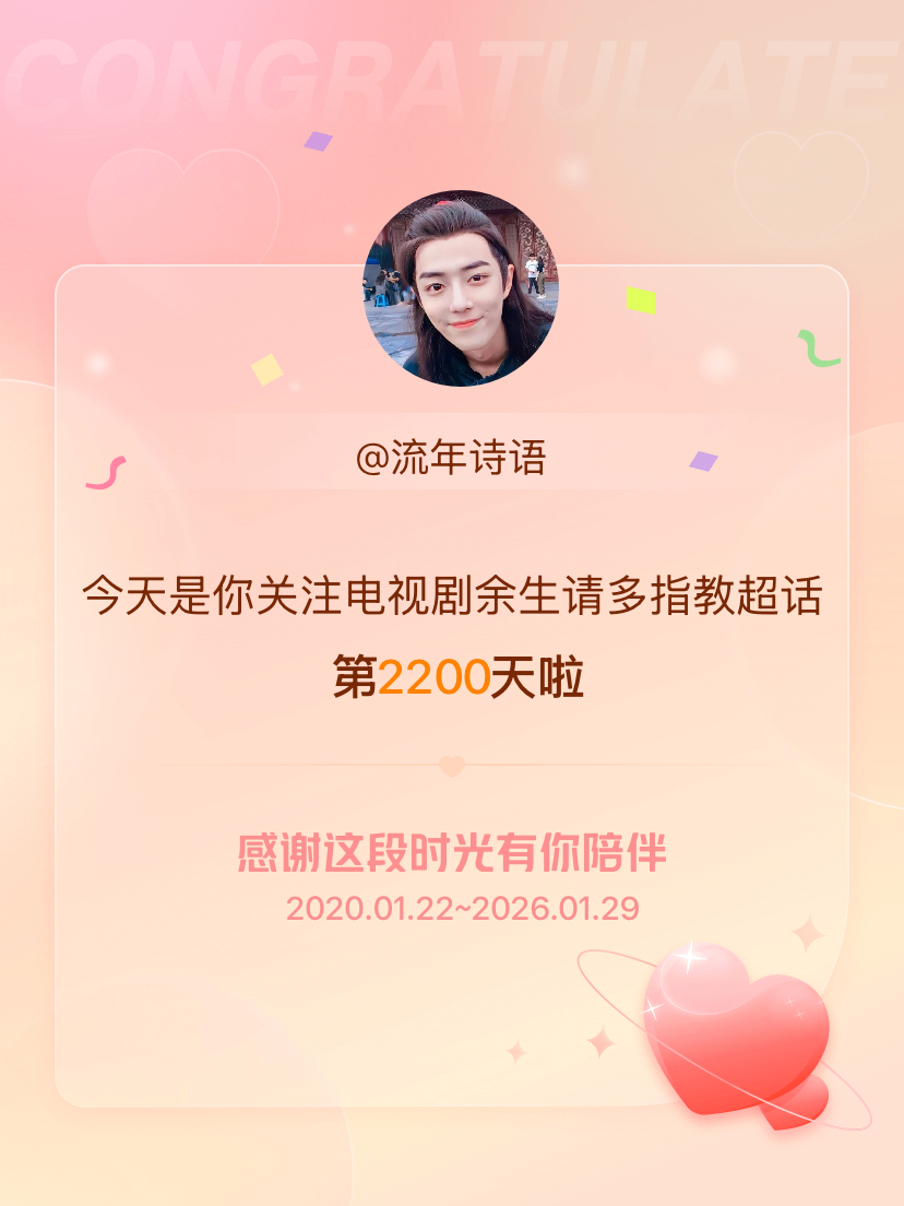电视剧余生请多指教今天是我关注超话的第2200天,希望能继续伴你一路前行~