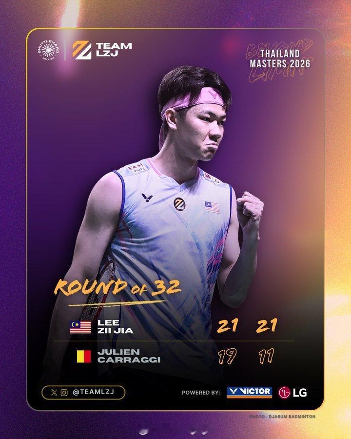 李梓嘉在2026年泰国羽毛球大师赛 获胜海报🔥因为去年长期饱受伤病困扰参赛不足,目前在300级别的赛事中李梓嘉都不能以种子选手出战,在首轮战胜🇧🇪卡拉吉后,李梓嘉在今天开始的1/8决赛迎战🇮🇳曼珠纳特。