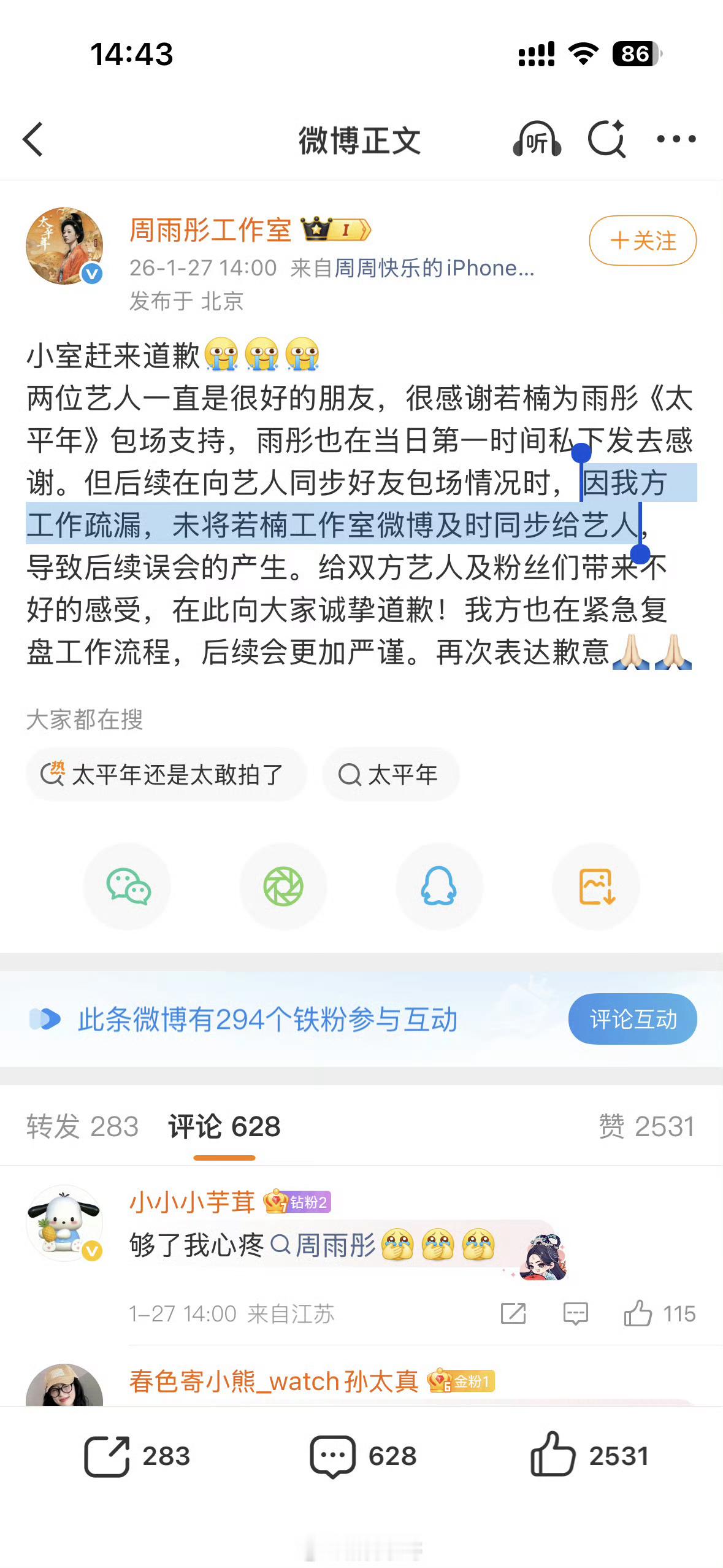 周雨彤不知道回应一下评论区,最后团队宣传背锅,说是自己没有把链接给周雨彤,我的姐