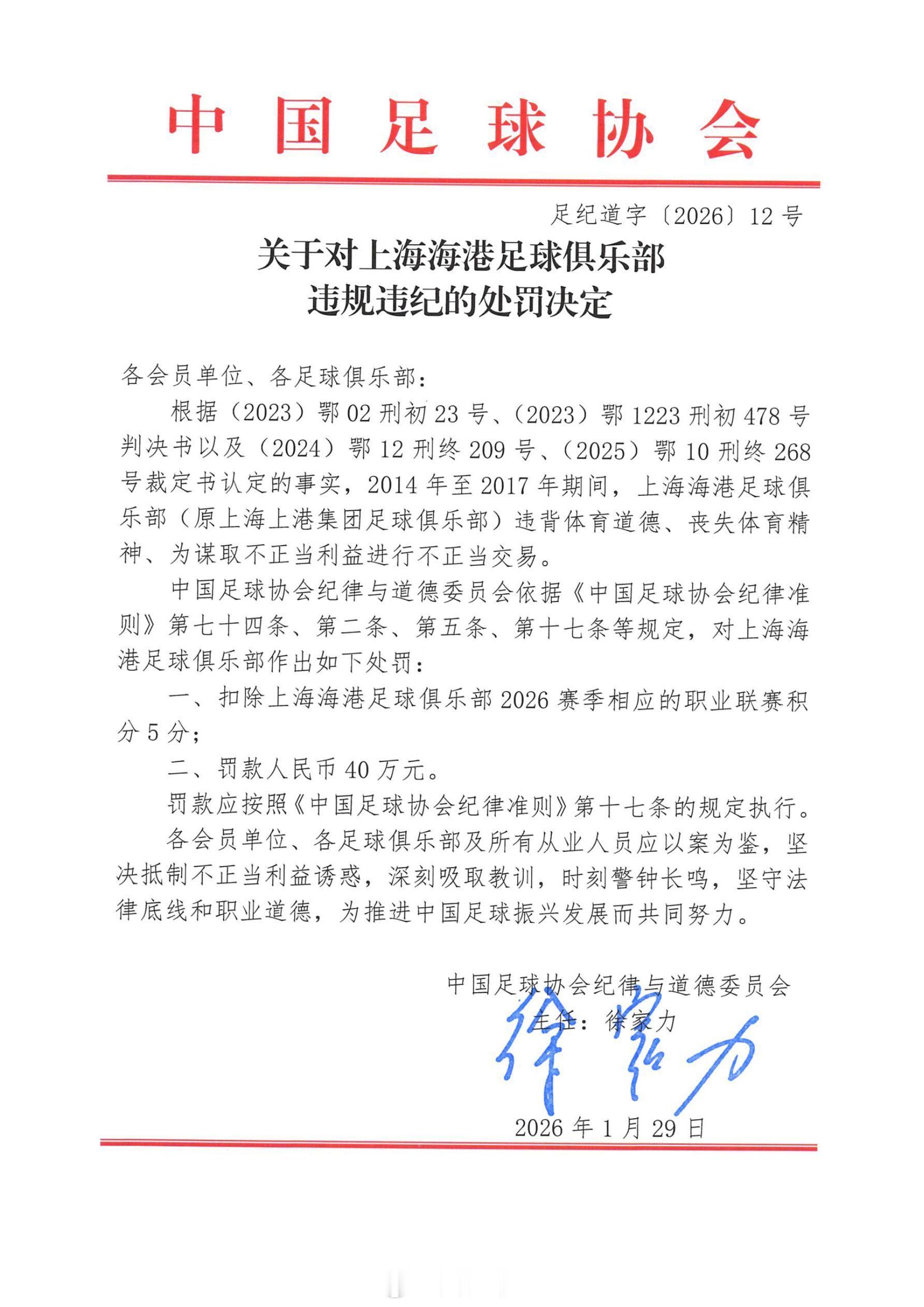 上海海港新赛季被罚5分申花津门虎新赛季被罚10分 据直播吧消息,新赛季多加俱乐部